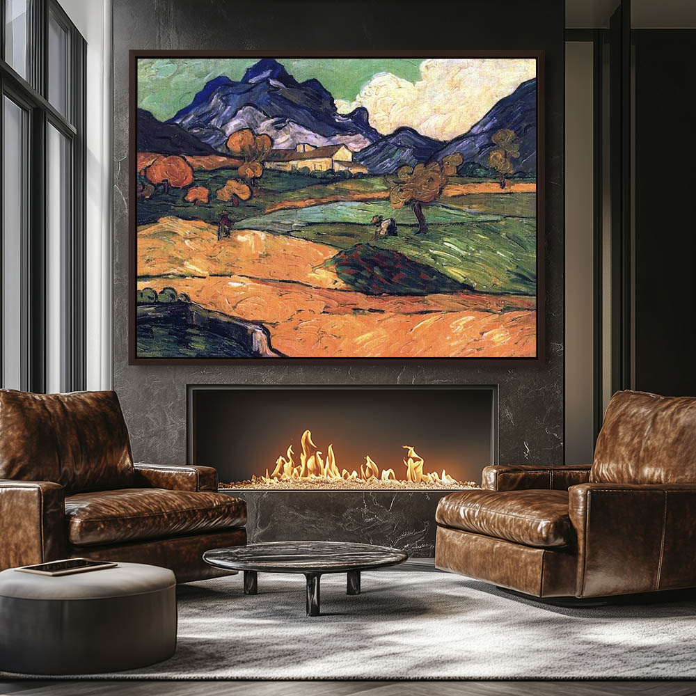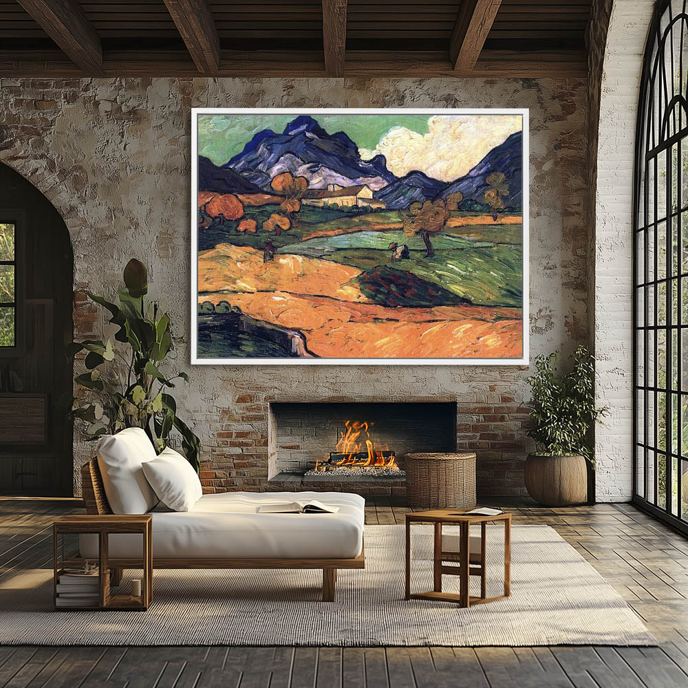 Impressionist Abstract Landscape with Farmhouse at the Foot of the Mountains