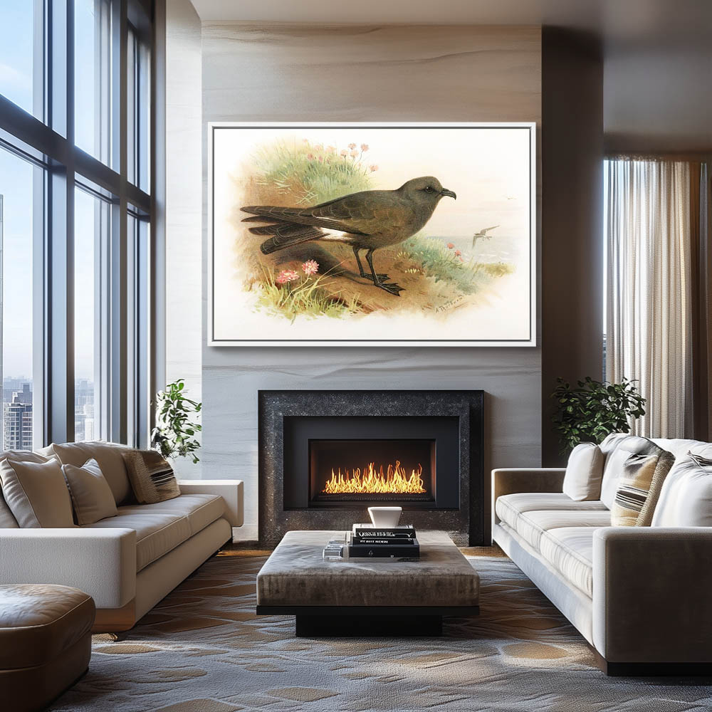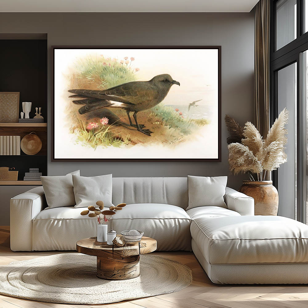 Painting of Leachs Petrel Sea Bird on the Beach Overlooking the Sea