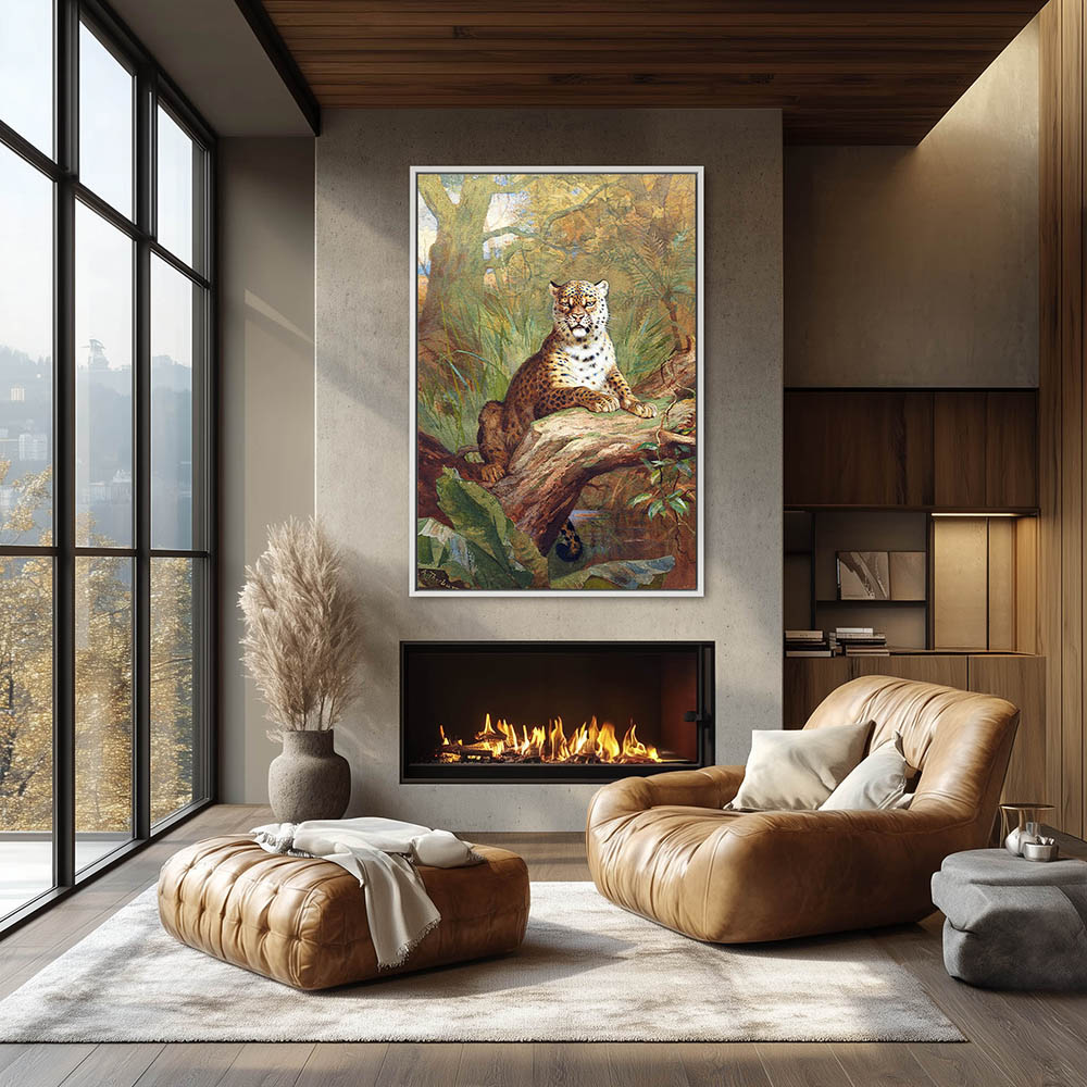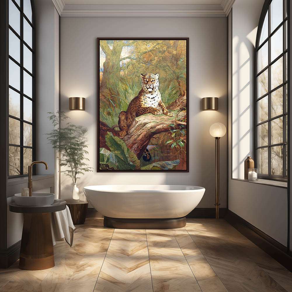 Forest Landscape Painting with a Leopard Resting in a Tree