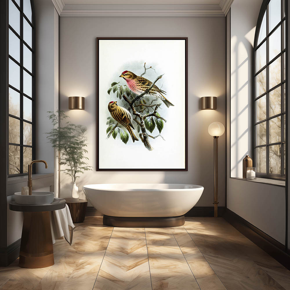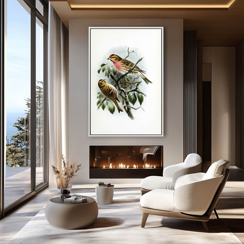 Painting of Lesser Redpoll Birds Resting on a Limb
