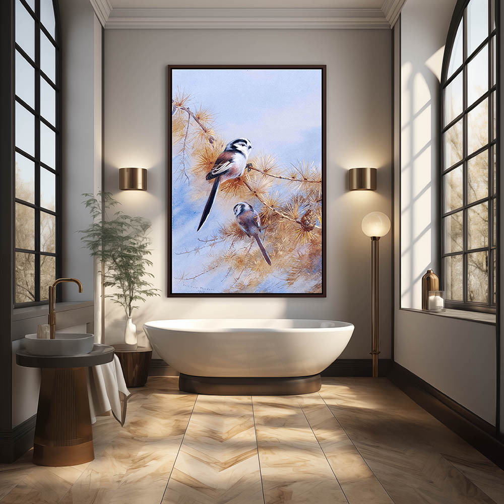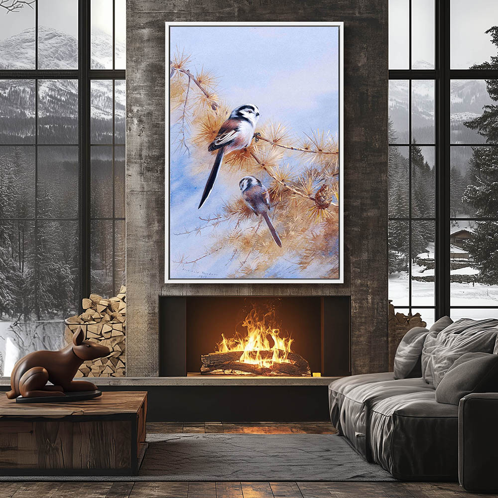 Painting of Birds Pearched on a Tree Limb