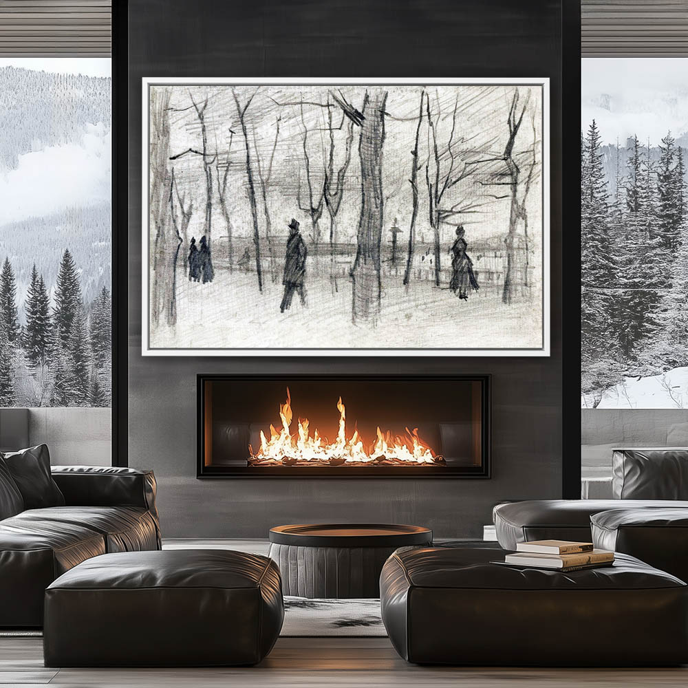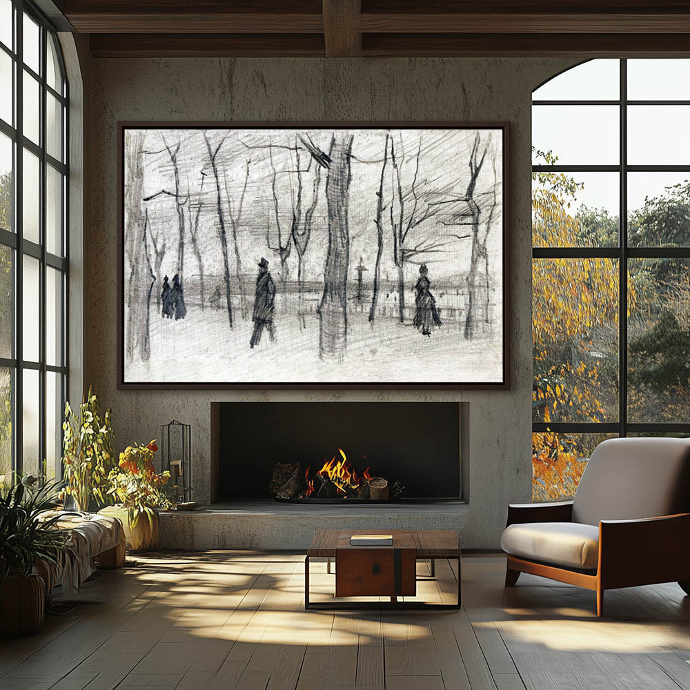 Landscape Drawing with Figures in a Park Garden