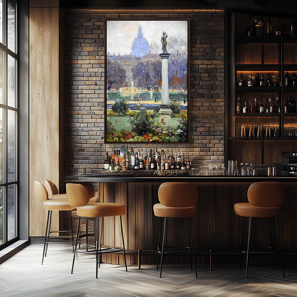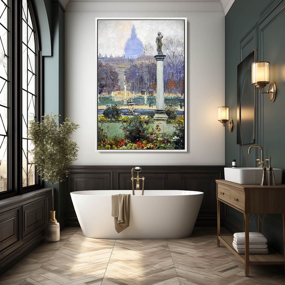 Vintage Landscape Painting of Luxemburg Garden in Paris France