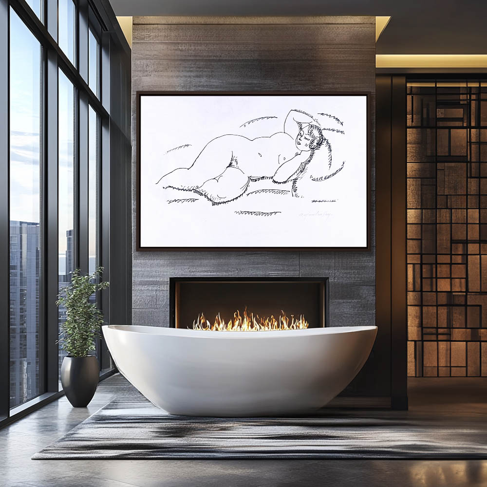 Abstract Figurative Nude Drawing of a Woman Reclining