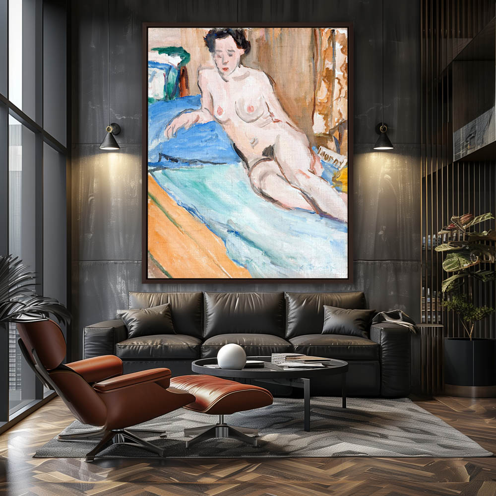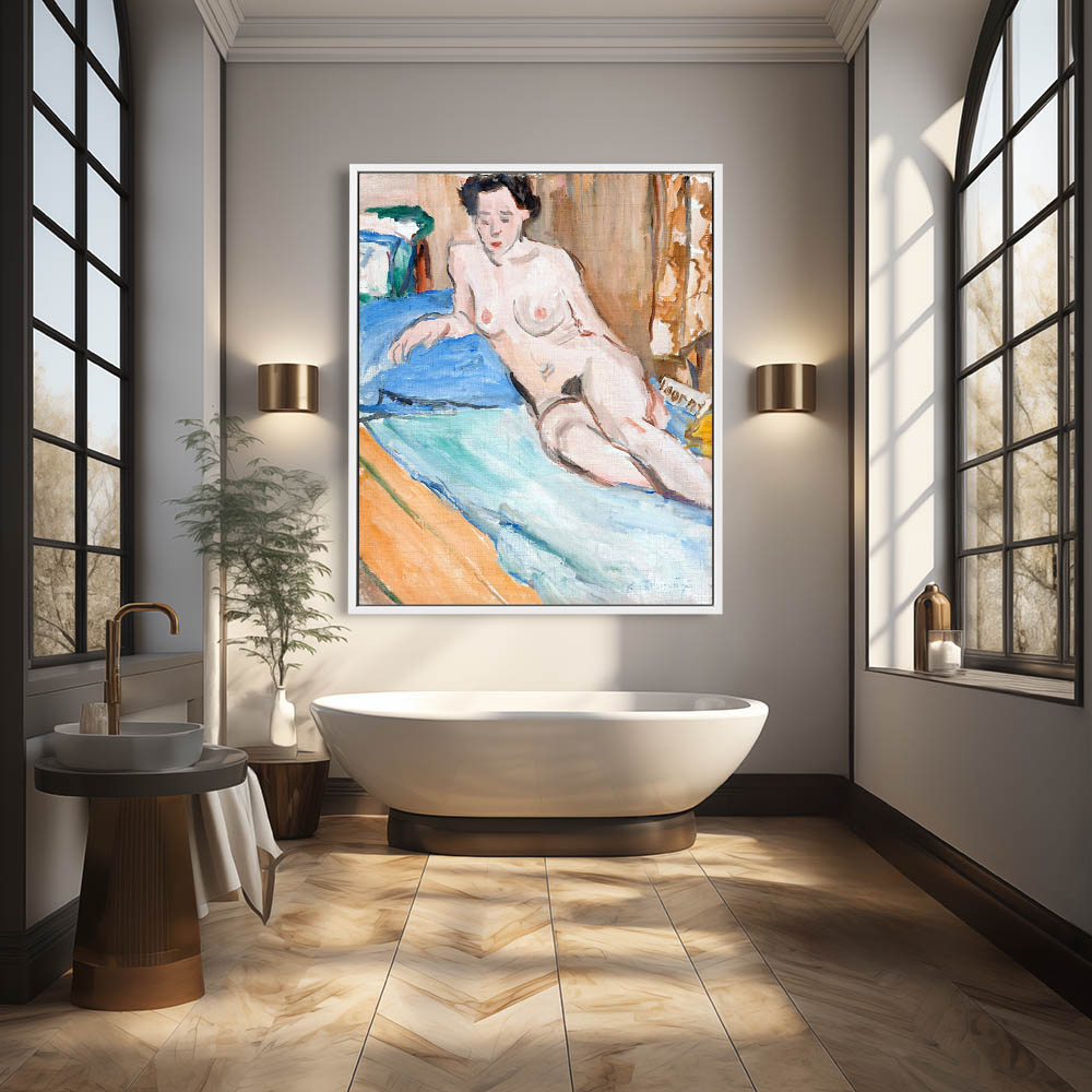 Vintage Figurative Painting of a Laying Nude Woman Facing Front