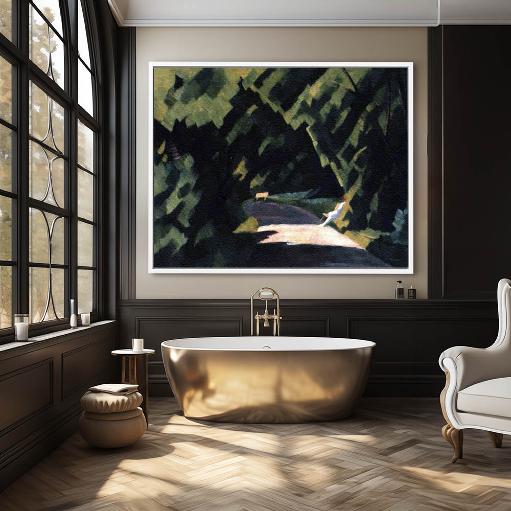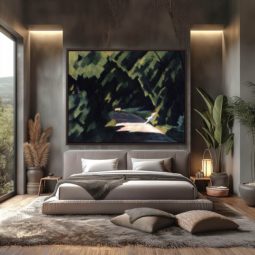 Abstract Landscape Painting with Figure Sitting on a Bench in the Park by a Path