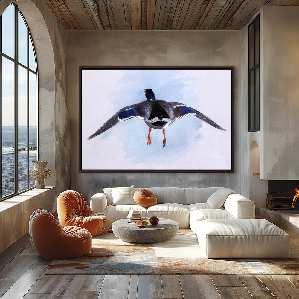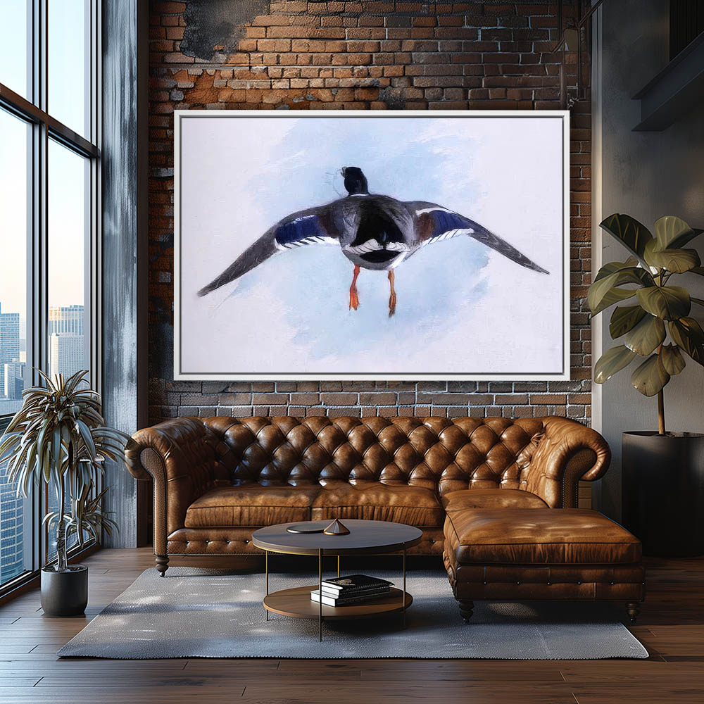 Painting of a Mallard Duck Flying from Behind