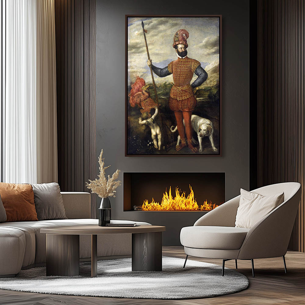 Vintage Figurative Portrait Painting with Cupid and a Dog