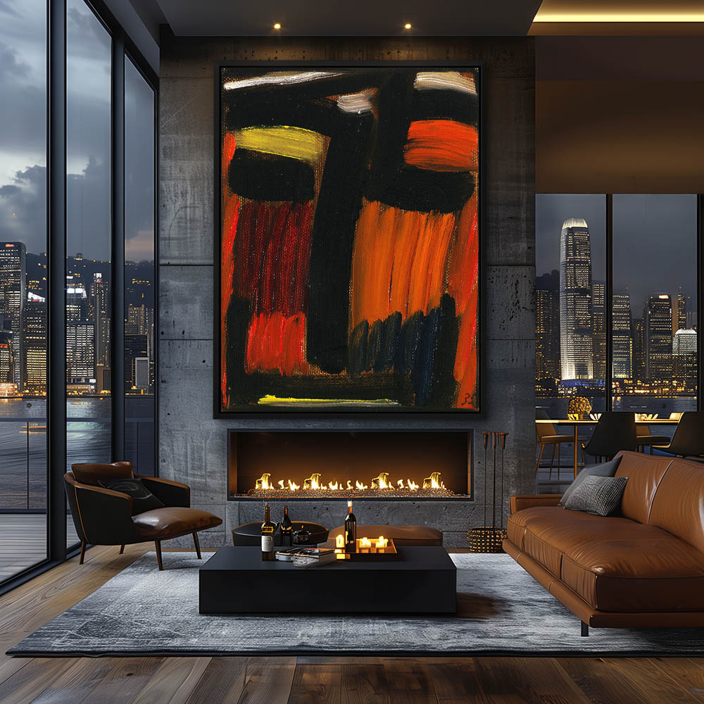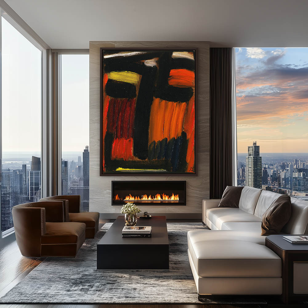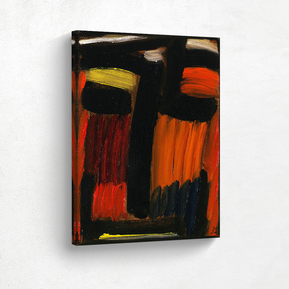 Abstract Figurative Head Painting in Black Red Orange and Yellow