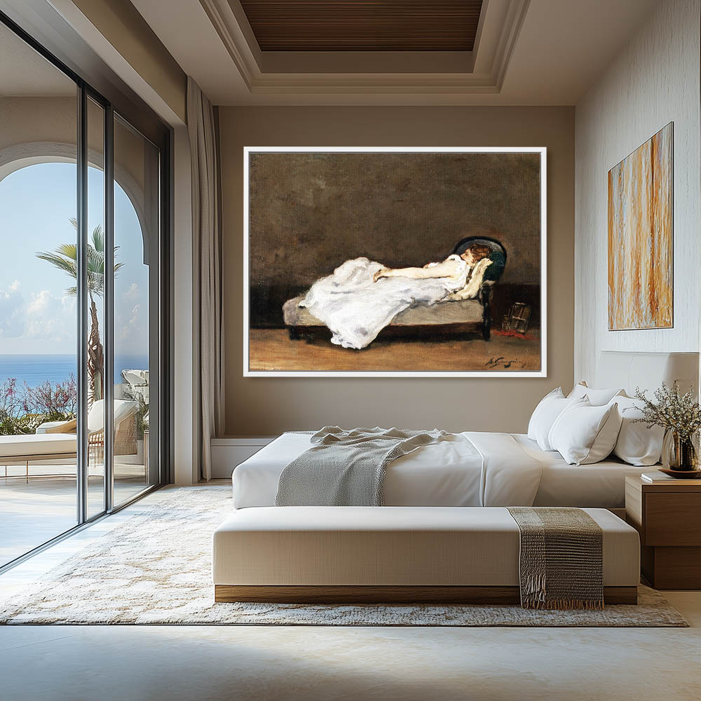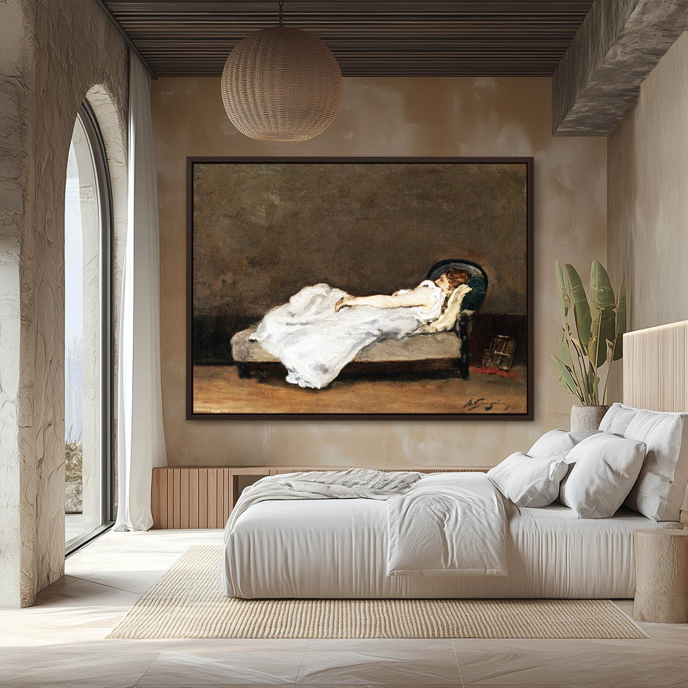 Vintage Figurative Painting of a Woman in Bed