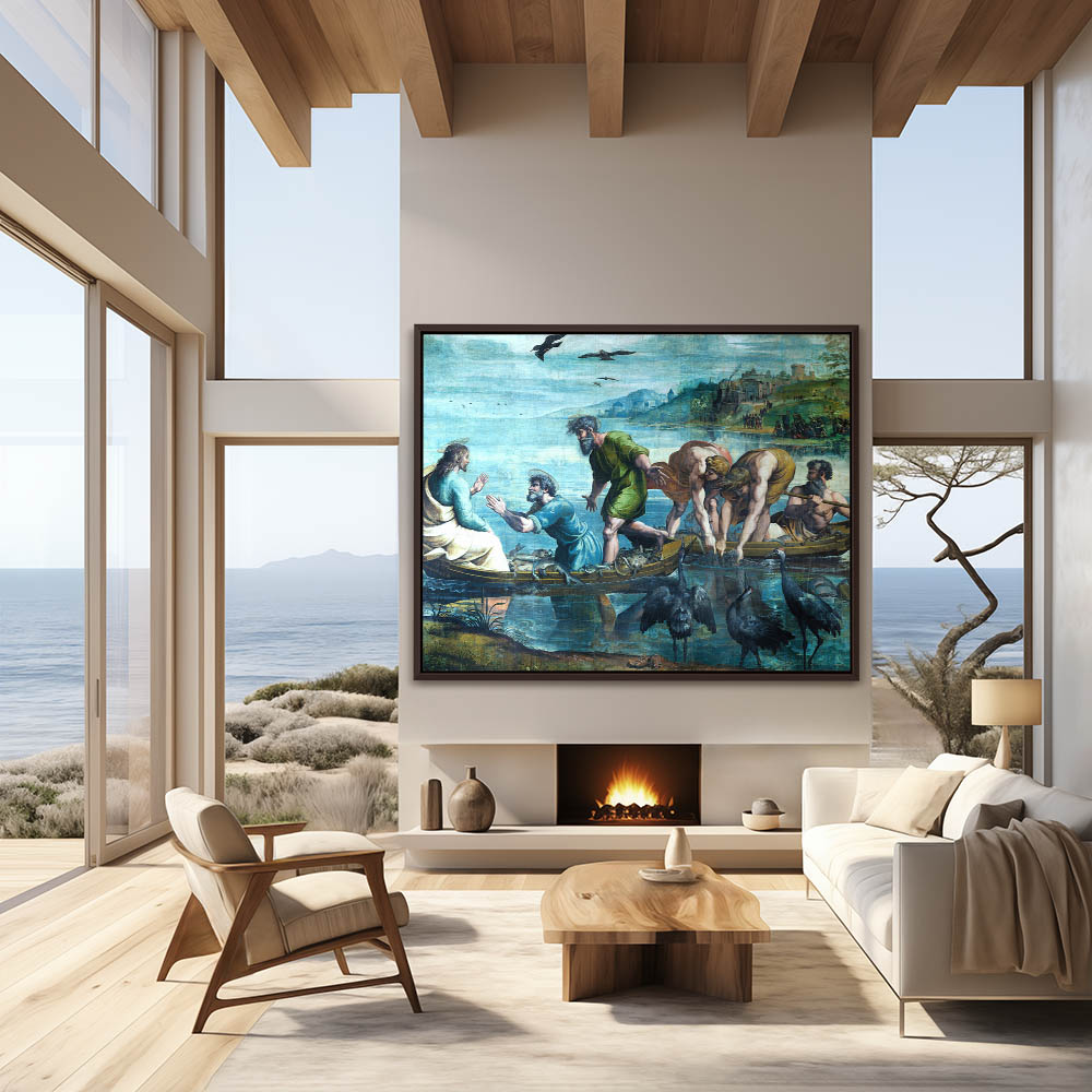 Vintage Religious Painting of Jesus Christ meeting with the Fishermen