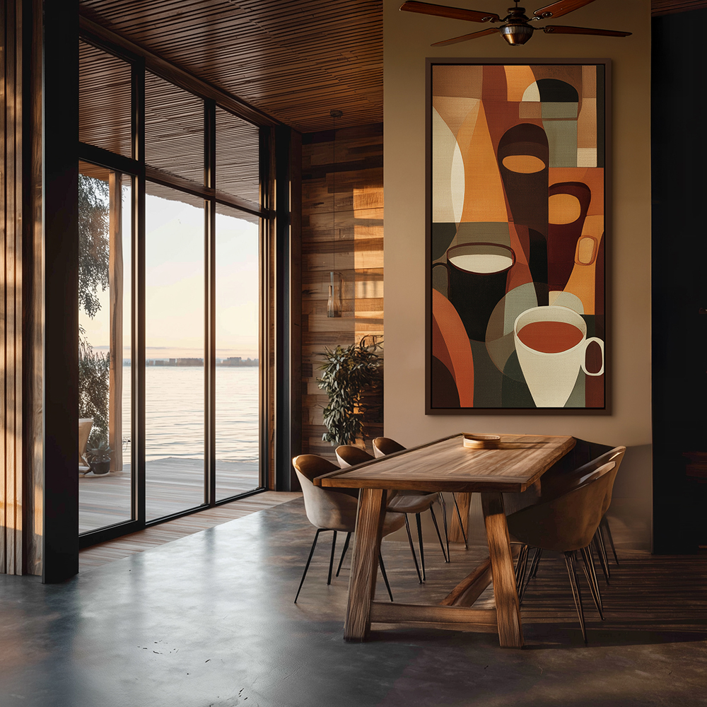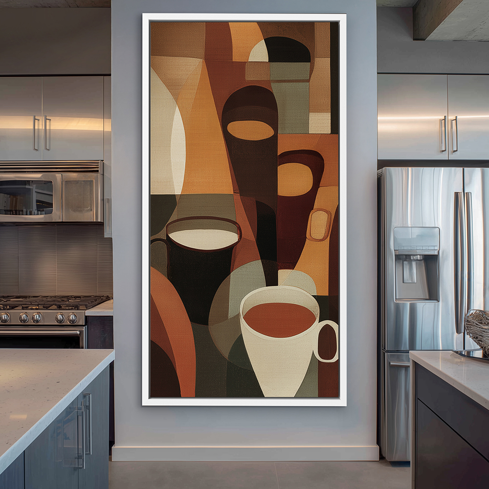 Warm up your space with this elegant contemporary painting of coffee cups in rich brown tones — a perfect blend of comfort, sophistication, and modern kitchen décor.