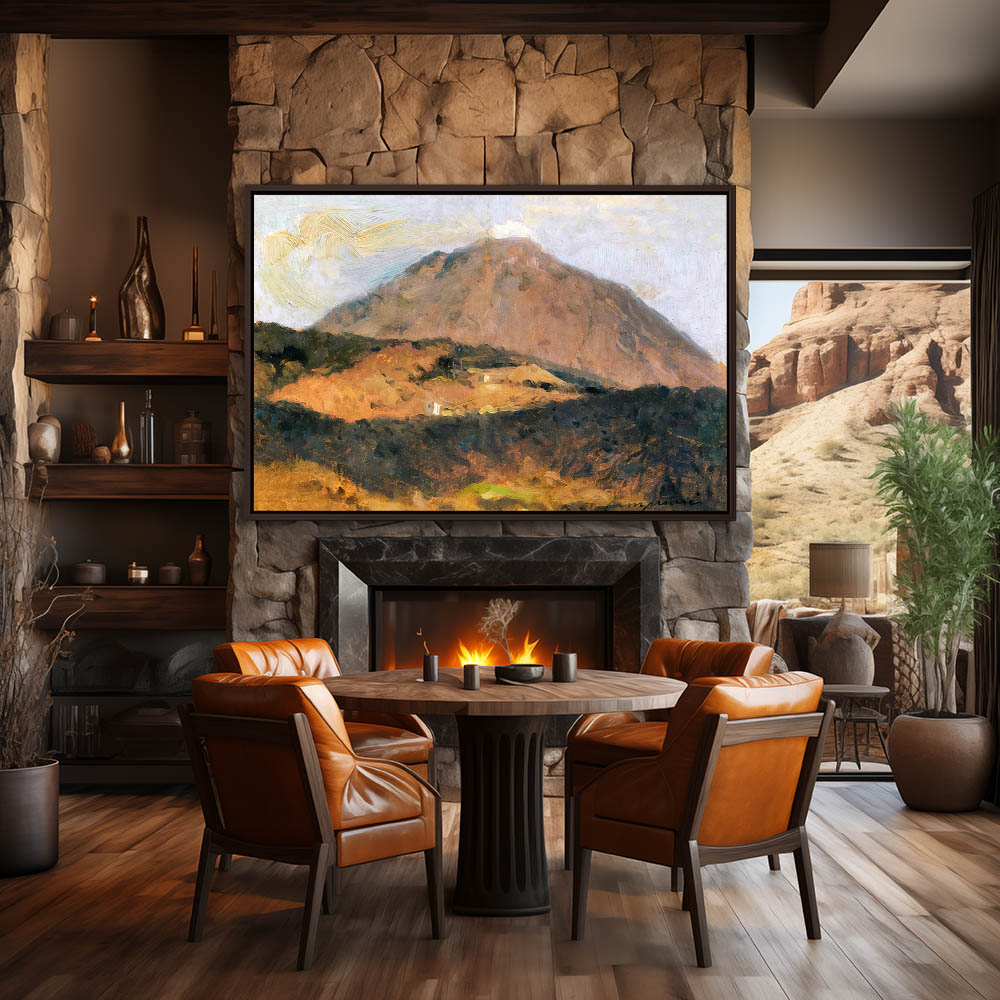 Mountain Landscape Painting with Structures