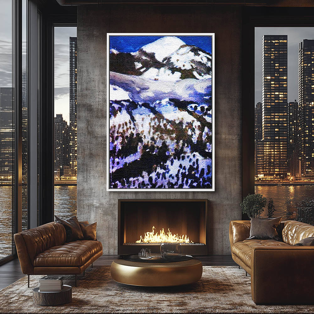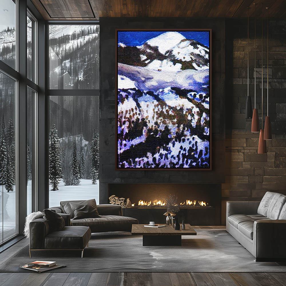 Landscape Mountain Painting in Winter with Snow and Trees