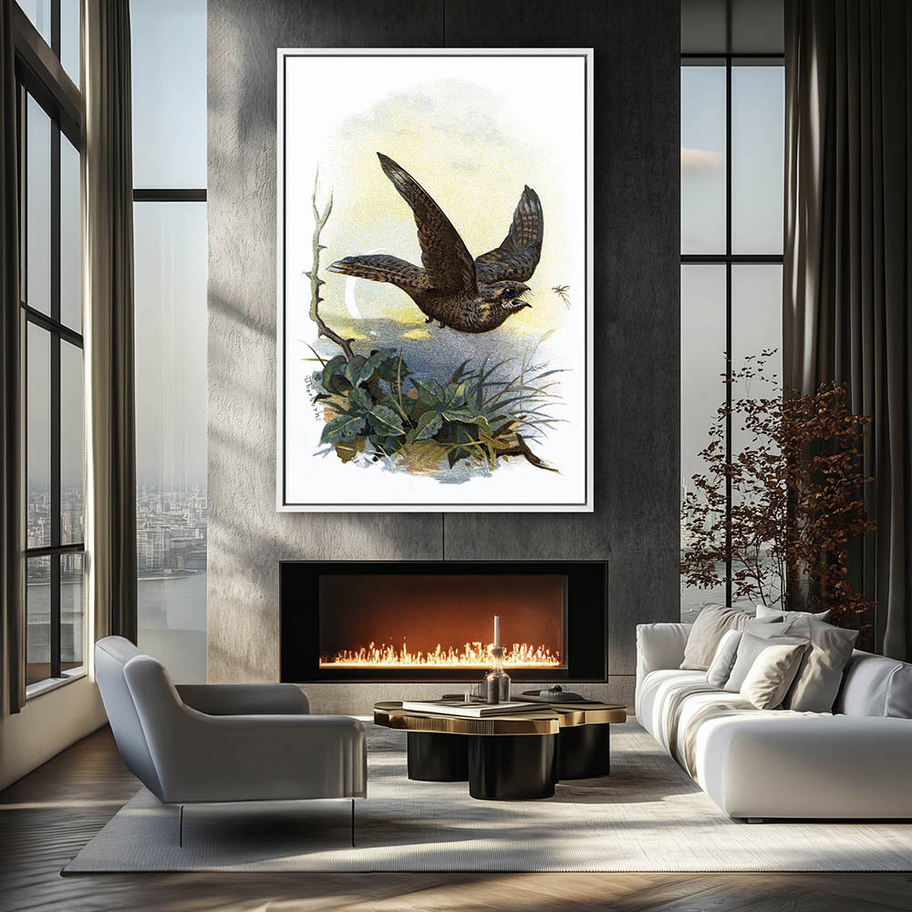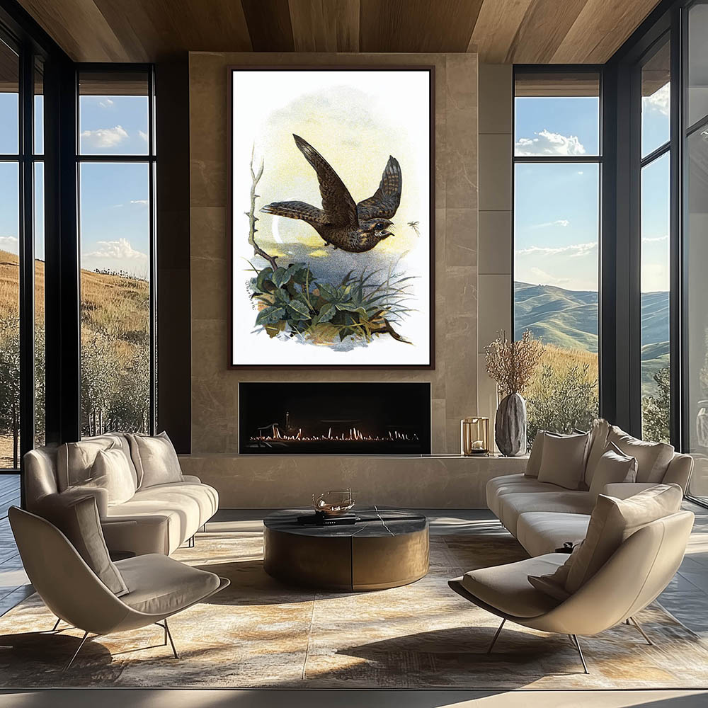 Painting of the Nightjar Bird Flying over the Landscape Catching Mosquito Hawks