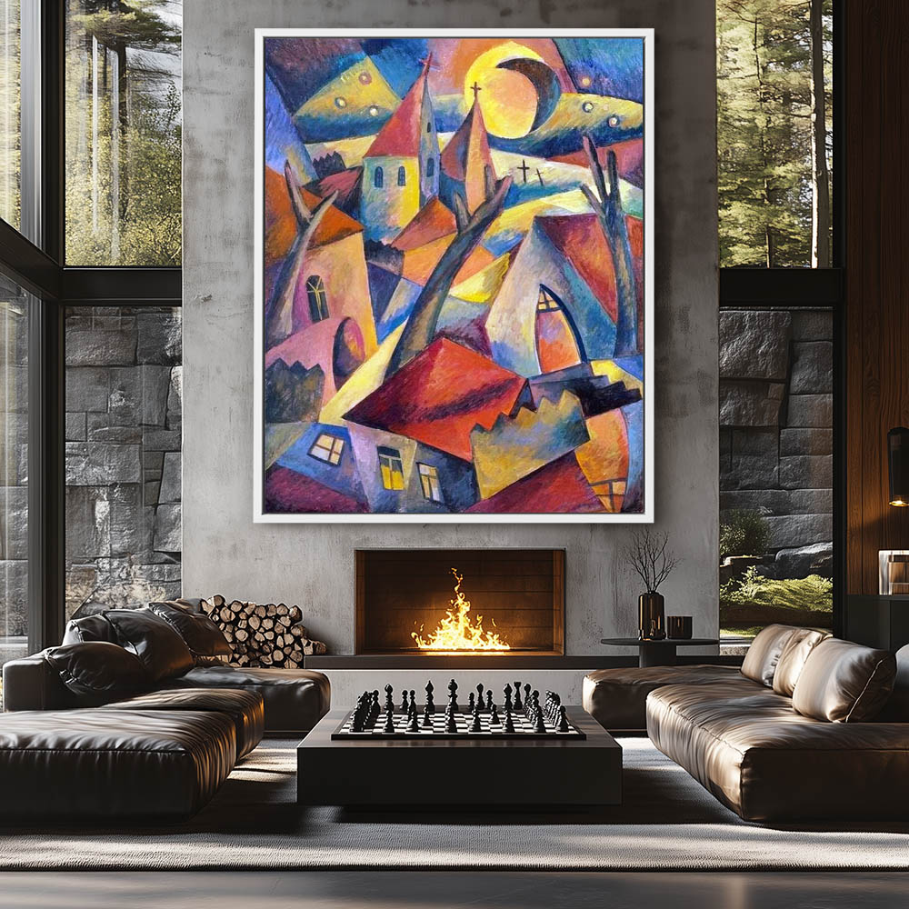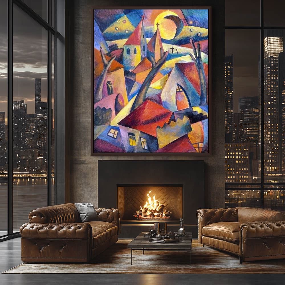 Abstract Painting of a Cityscape with Churches in Cubism