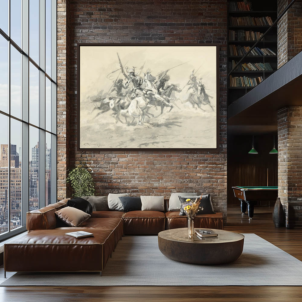 Indians on horseback with spears and guns