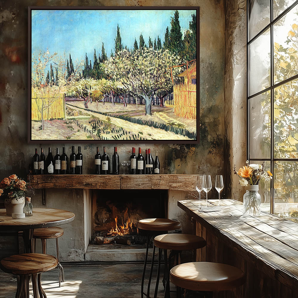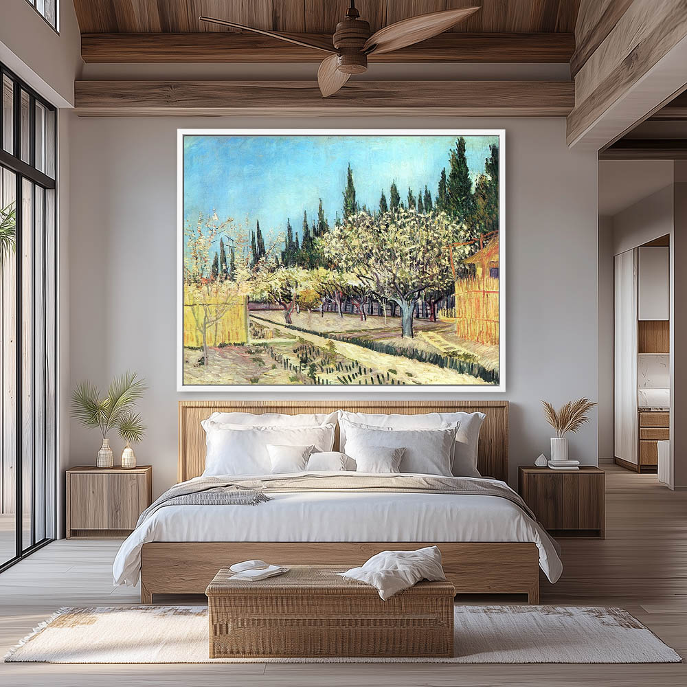 Orchard in Blossom Bordered by Cypresses