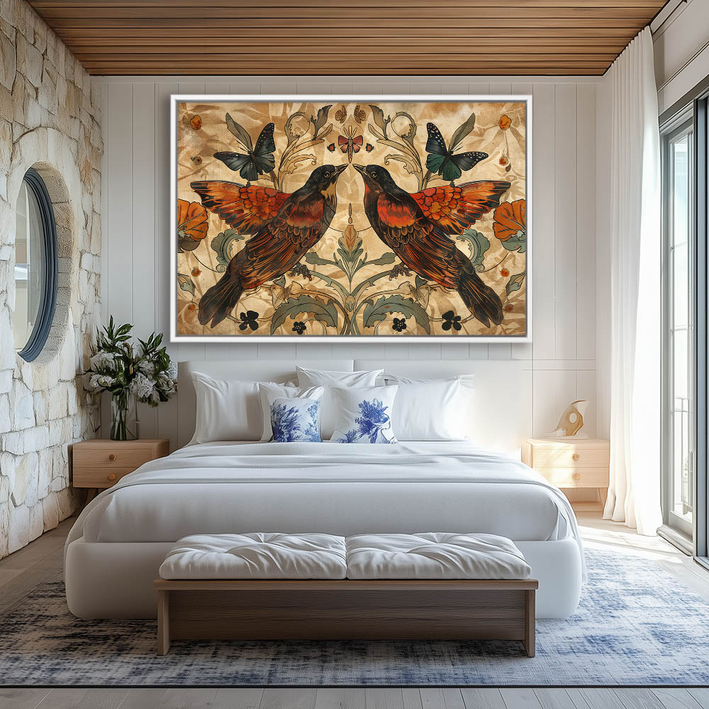 Birds and butterflies in a mirrored pattern