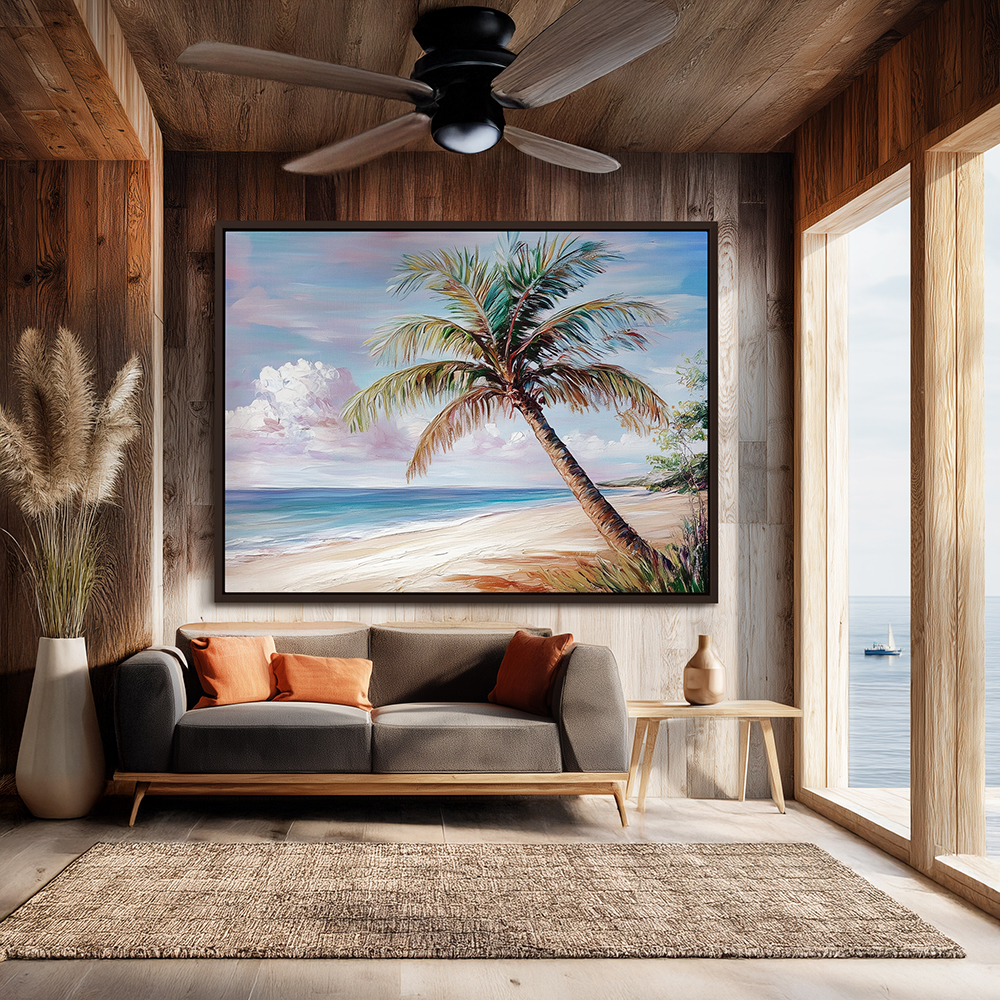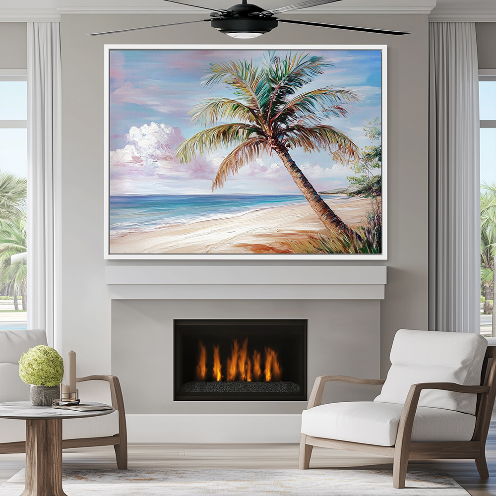 Coastal Wall Decor with a Palm Tree on the Beach, a perfect choice for your wall decor collection, this Canvas Painting comes in a wide variety of sizes and formats, including metal wall art, metal prints, vinyl wall art, vinyl prints, peel-and-stick vinyl, vinyl wall art, vinyl wall peel, framed wall art, framed prints, fine art prints, poster art, poster wall art, poster prints, stretched canvas, stretched canvas wall art, and framed canvas wall art with floater frames. Available frame colors include black, white, and brown, offering options to match any style.