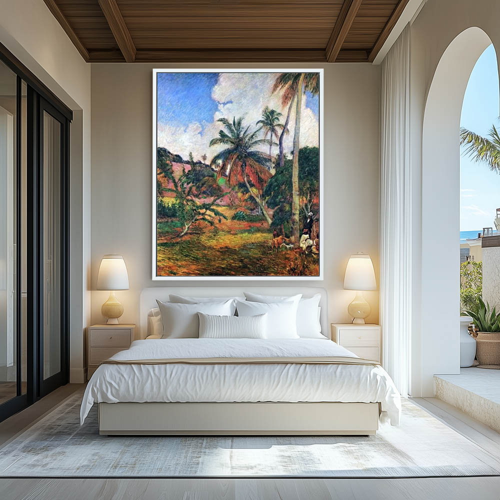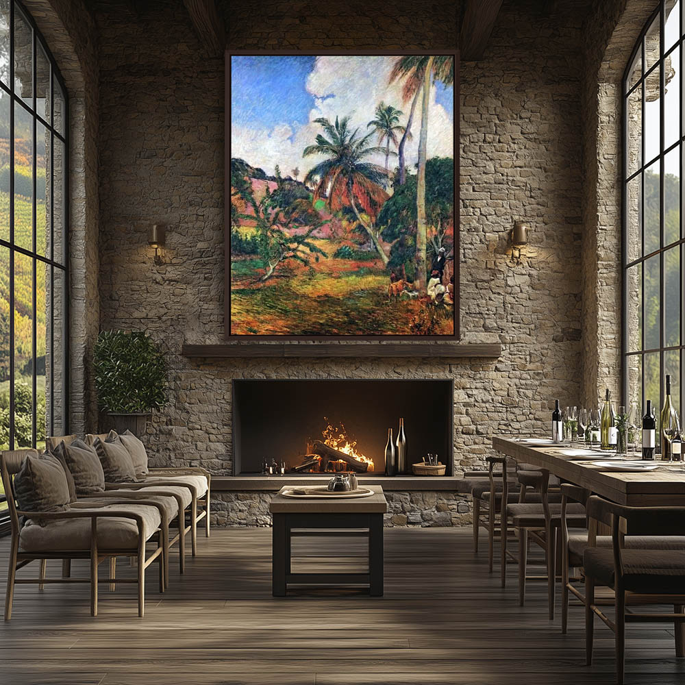 Vintage Landscape Painting with Palm Trees on Martinique