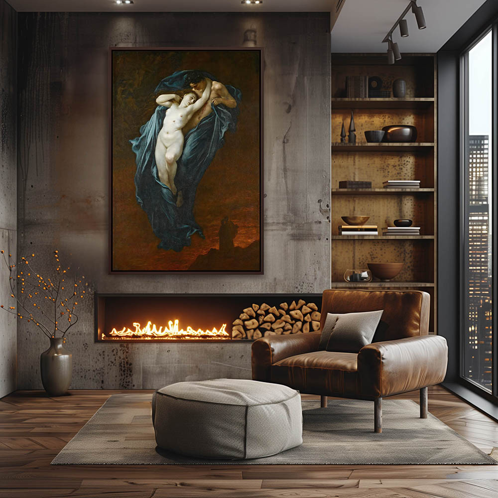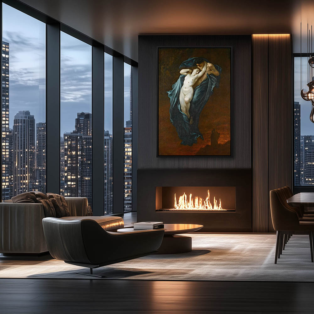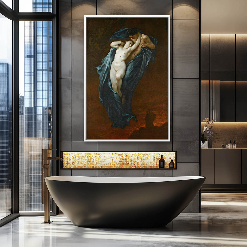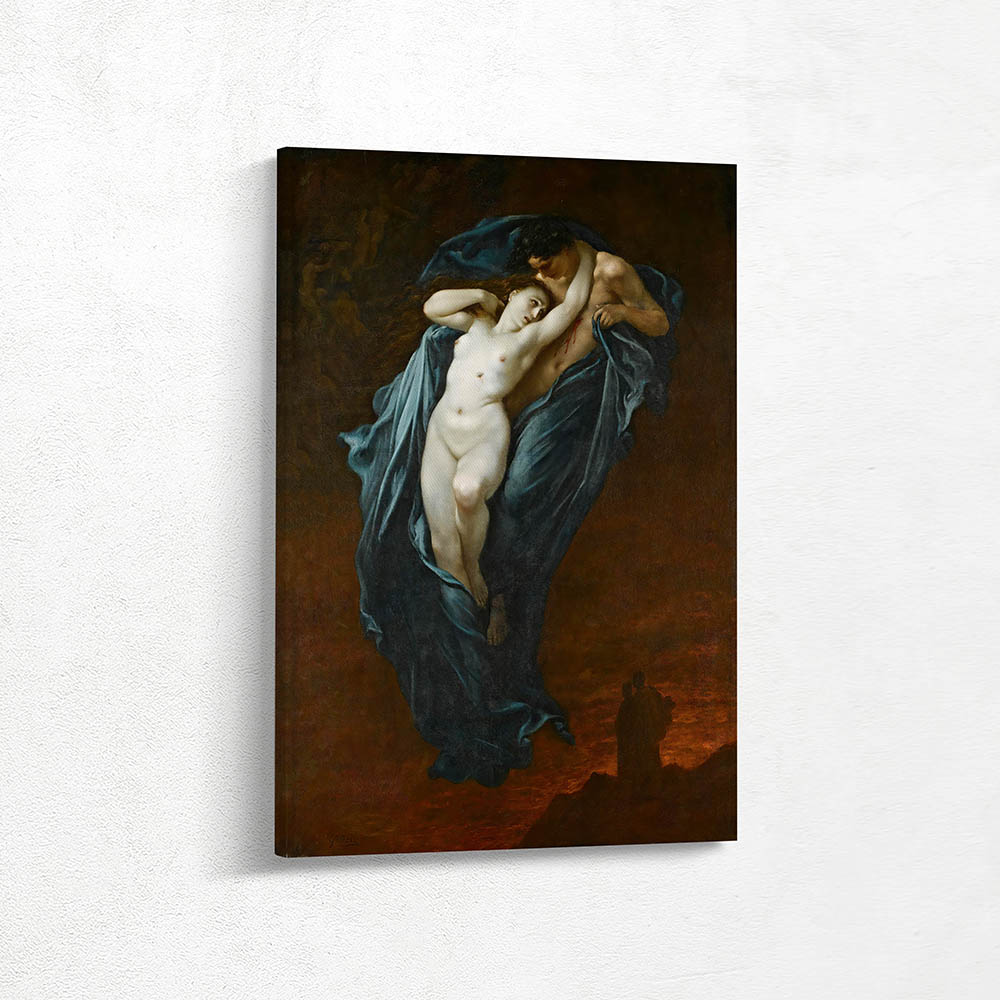 Nude, adulterous lovers Paolo and Francesca de Rimini with their moral wounds, draped in a blue fabric