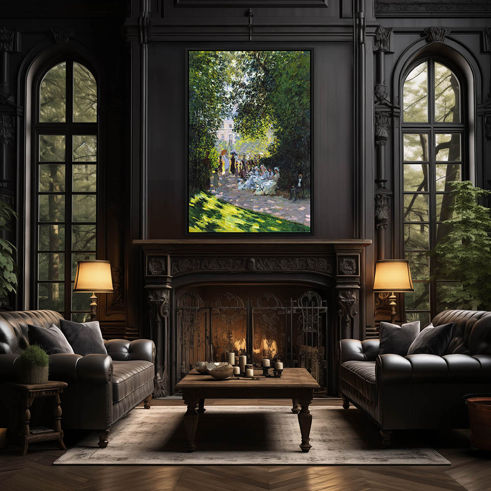 Vintage Landscape Painting with Figures Resting in a Park