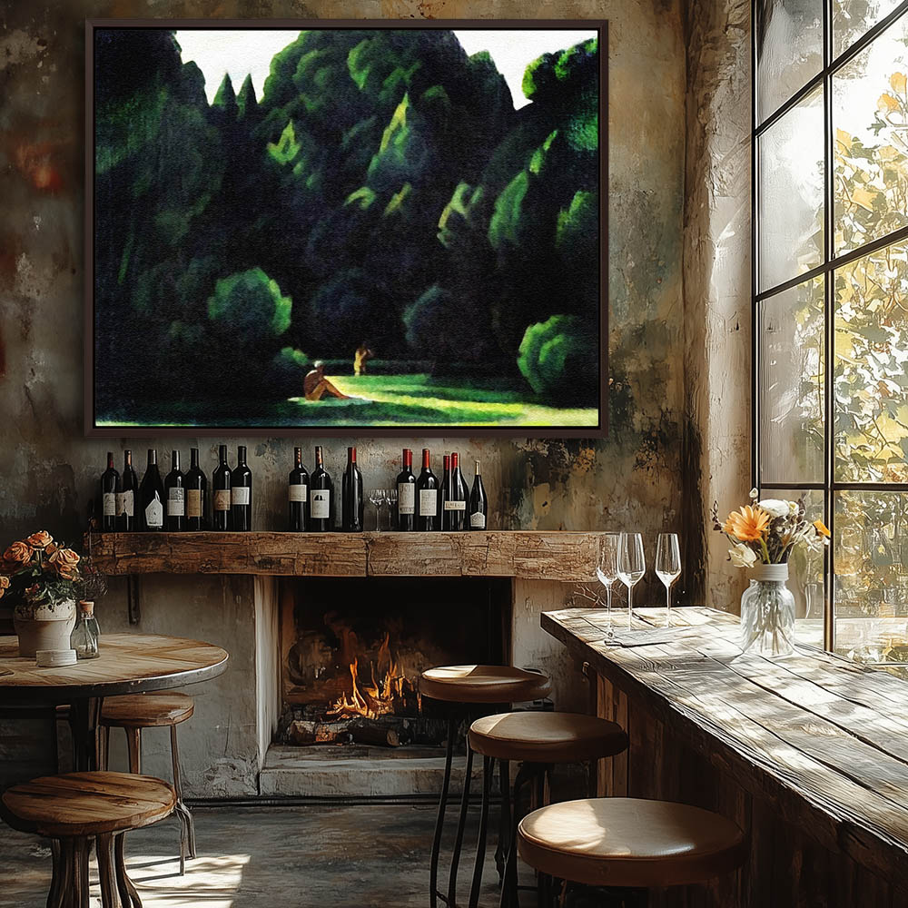 Abstract Figurative Painting of Two Nude Women Bathers with Trees in the Park