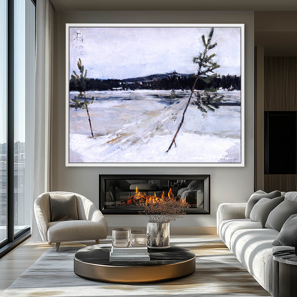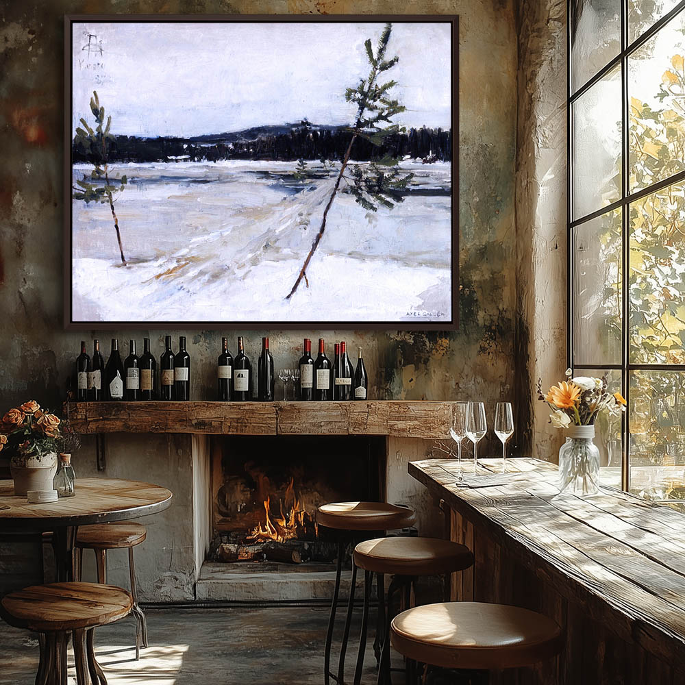 Landscape Painting with a Winter Path over the Ice