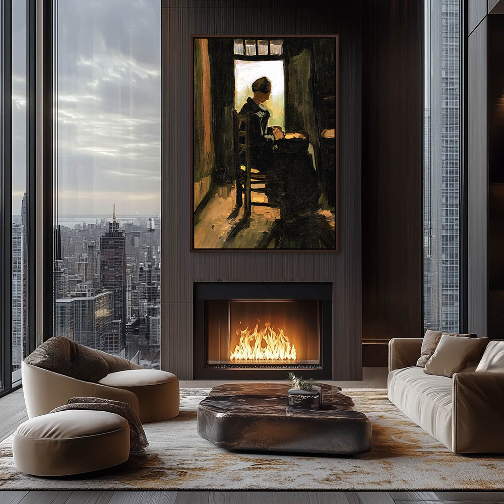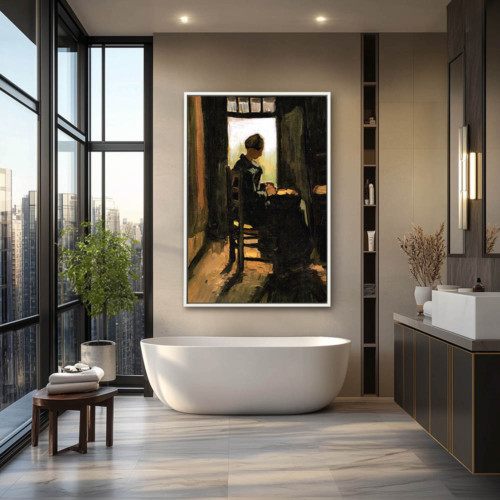 Impressionist Painting of a Woman Peeling Potayoes