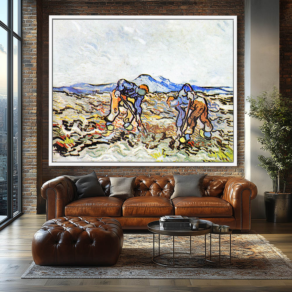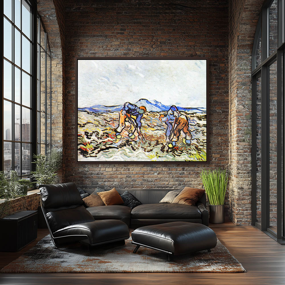 Impressionist Abstract Landscape Painting of Figures Digging in the Field for Potatoes