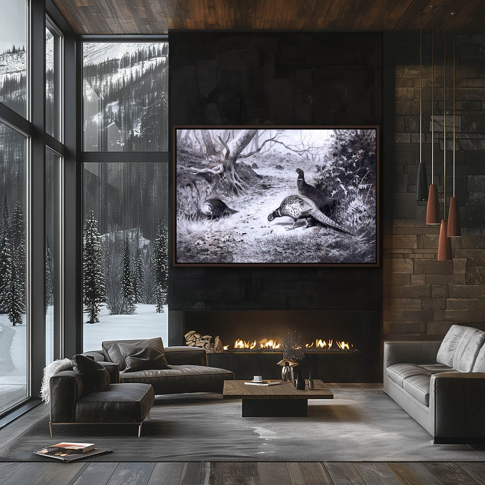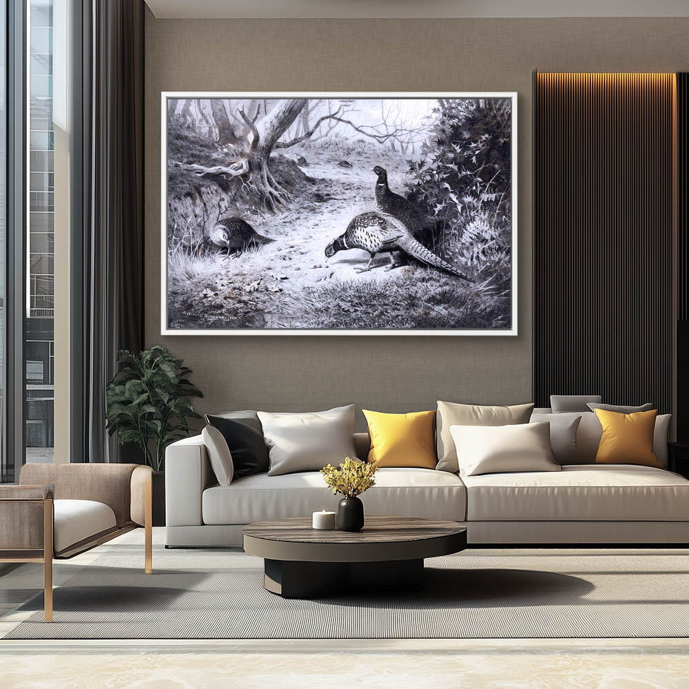 Landscape Painting of Pheasants on the Forest Floor