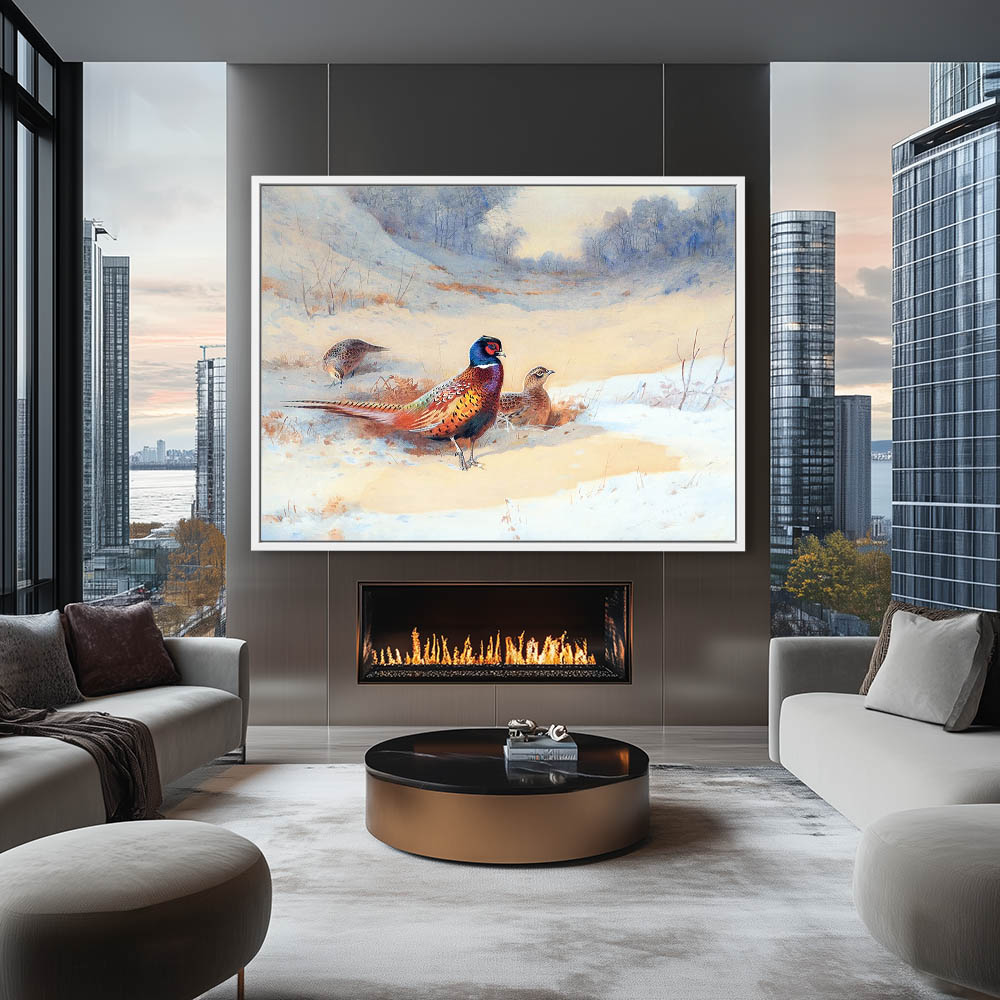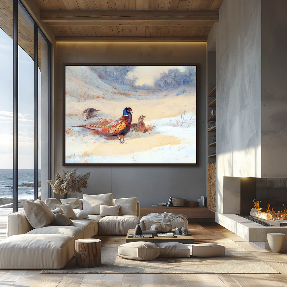 Landscape Painting with Pheasants in the Snow