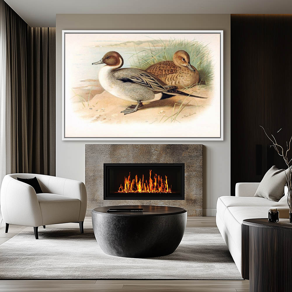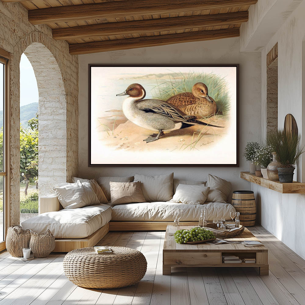 Painting of Pintail Ducks resting in the Sand Near the Grass