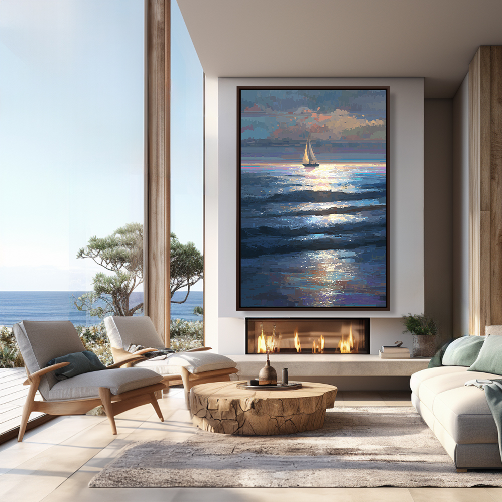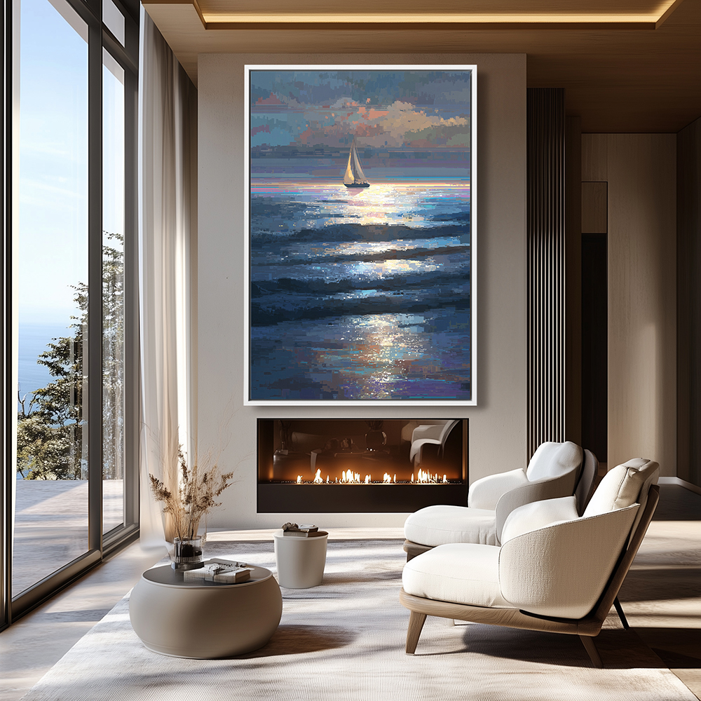 | Contemporary Pixelated Painting of a Sailboat at Sea |