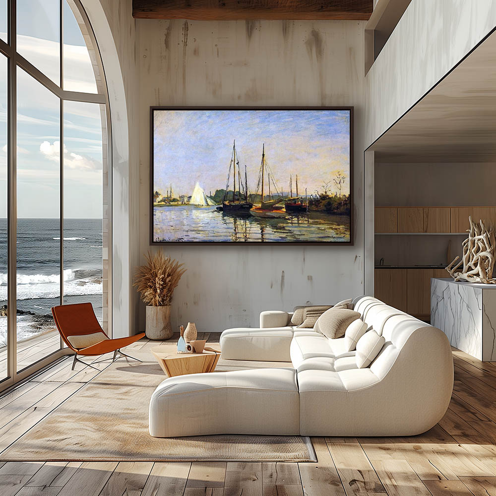 Vintage Seascape Painting with Sailboats in the Water
