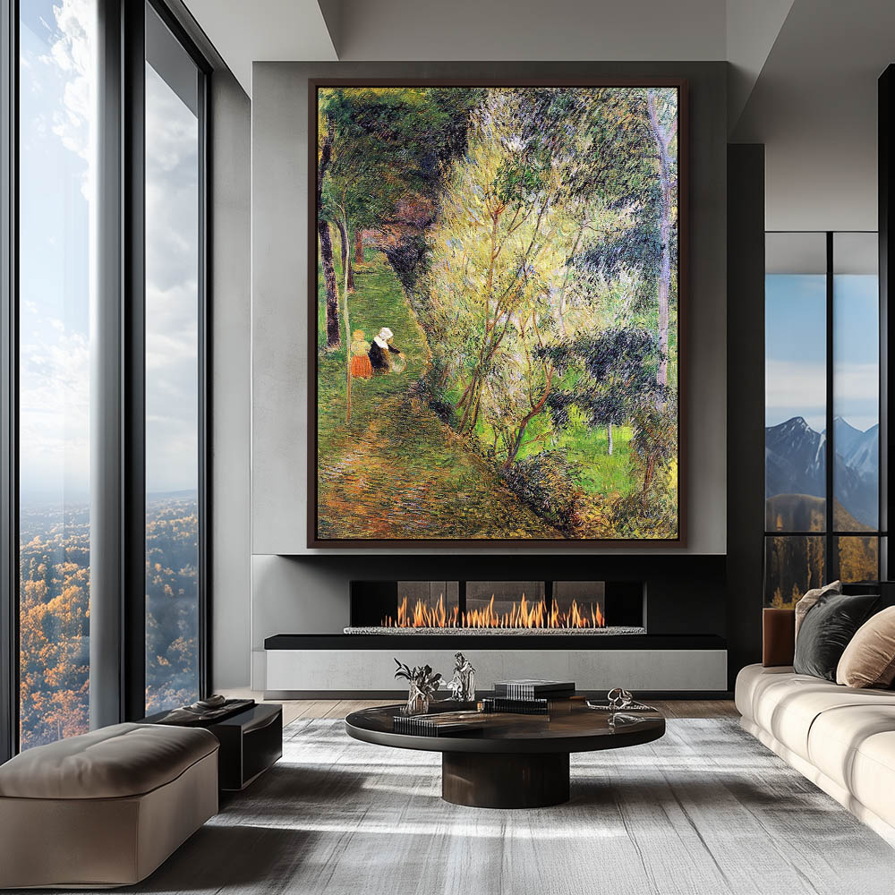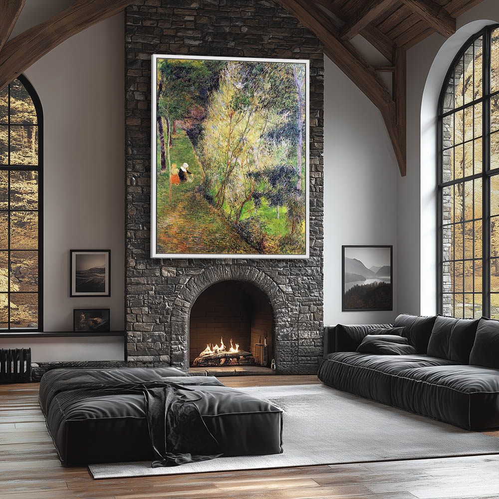 Vintage Landscape Painting with a Woman and Child
