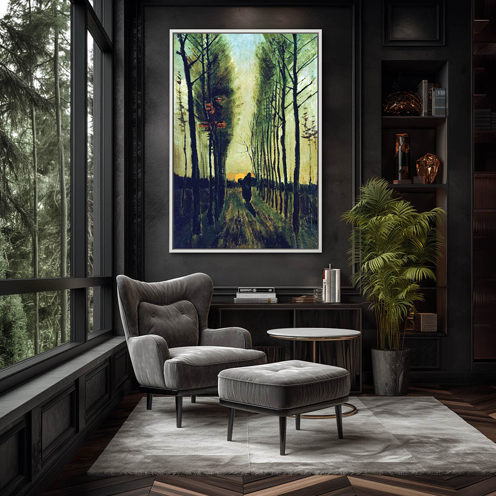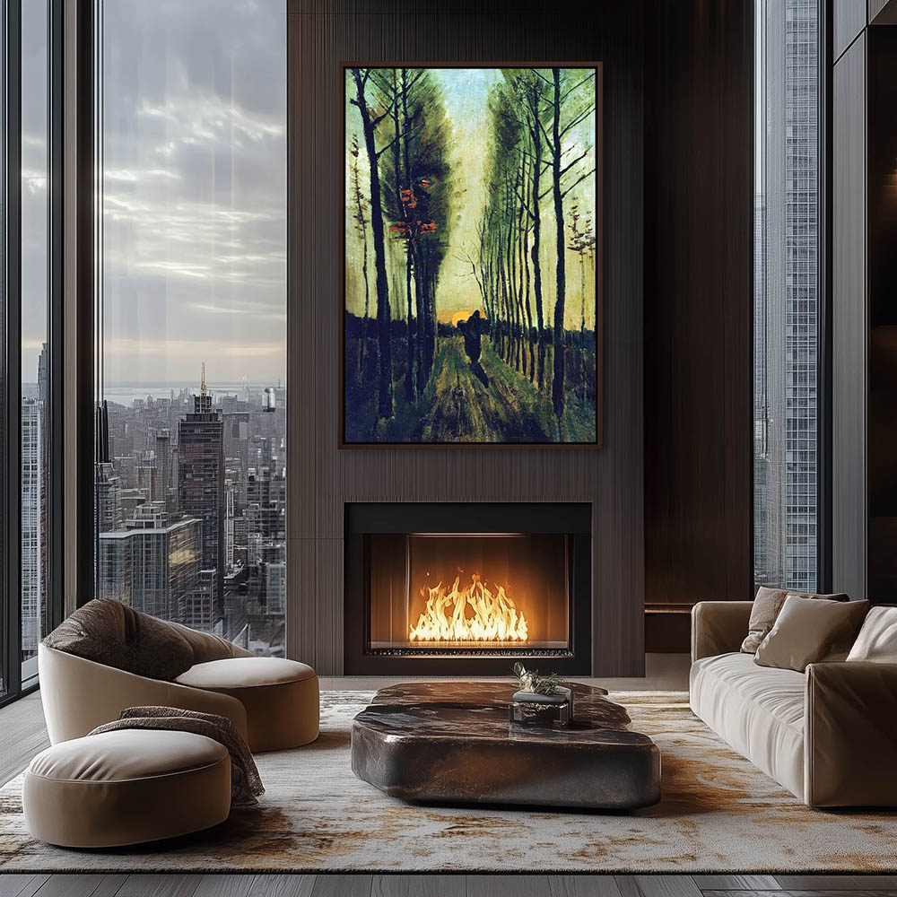 Impressionist Painting of a Figure on a Path Through the Poplars