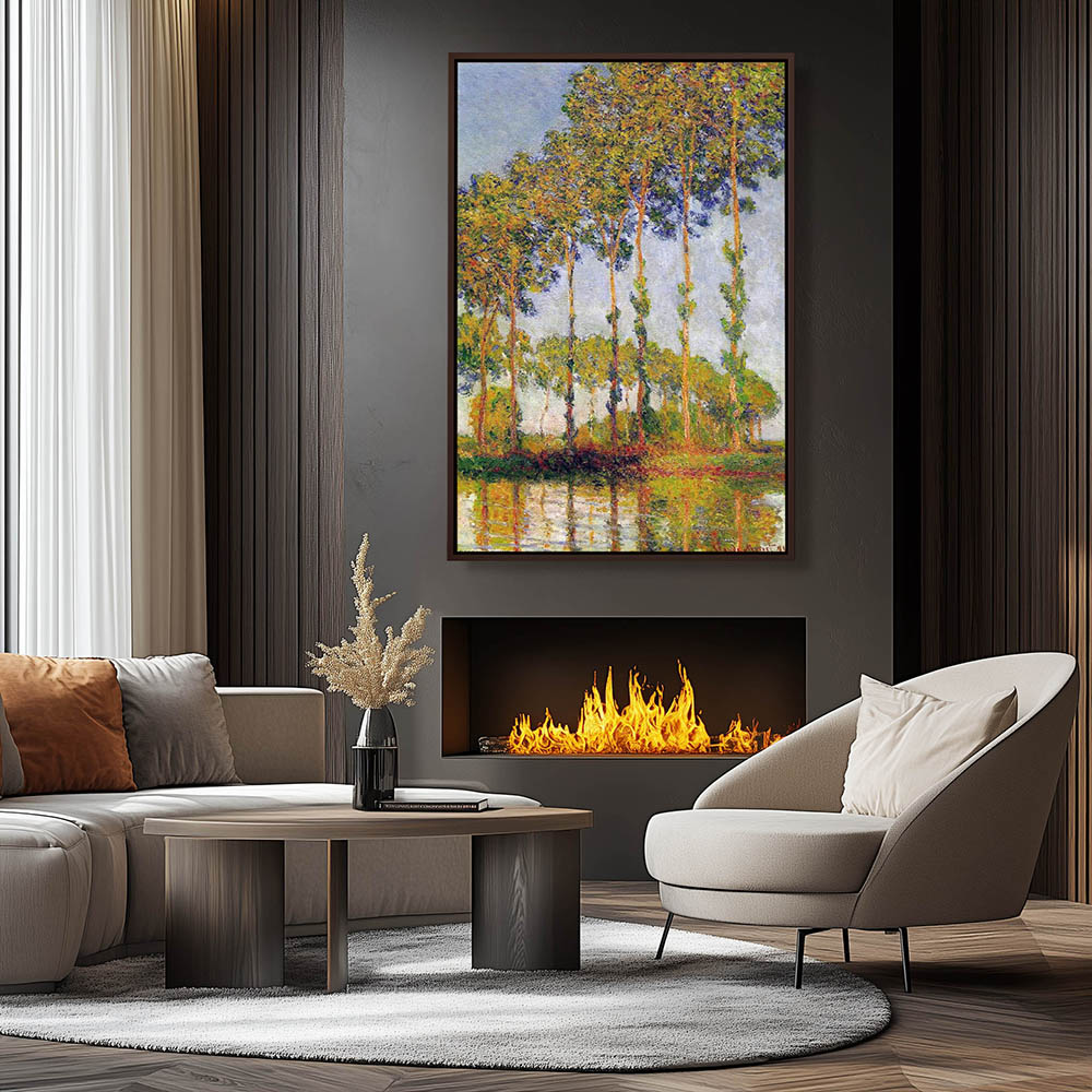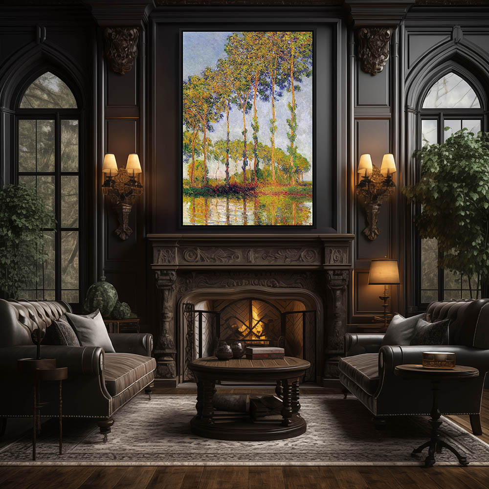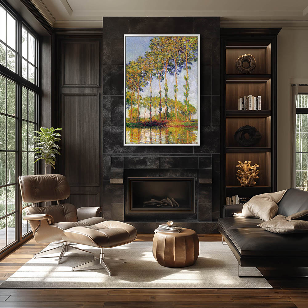 Vintage River Landscape with Poplar Trees along the Shore of the River Epte