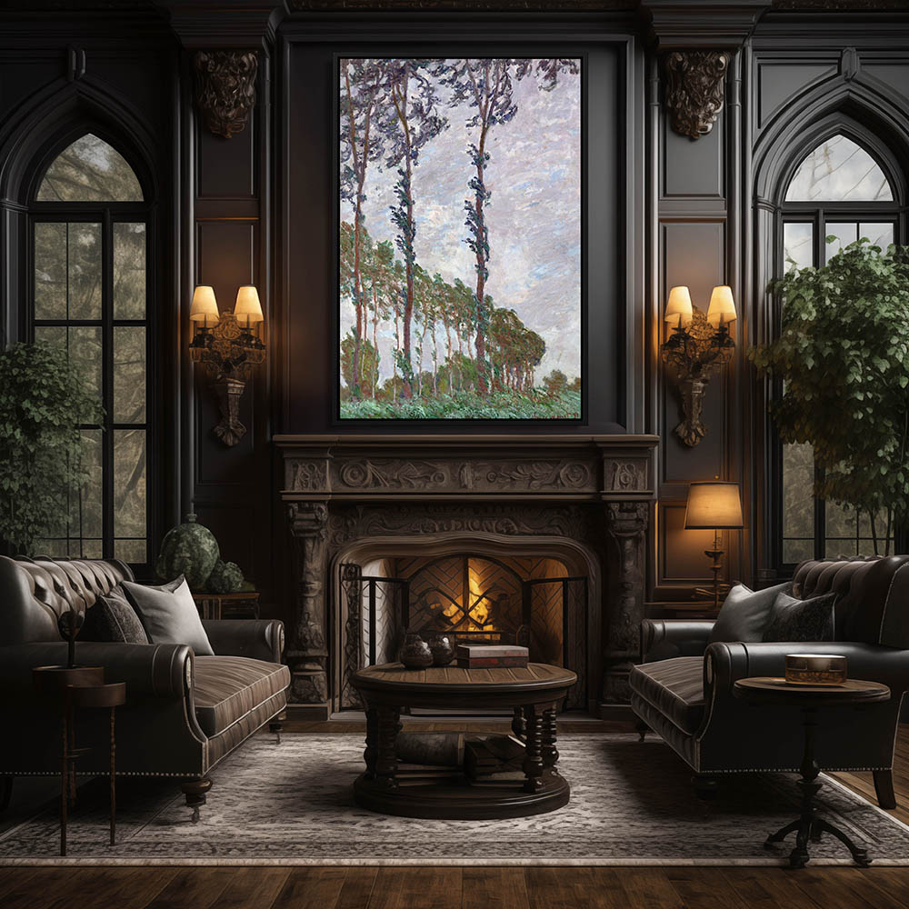 Vintage River Landscape with Poplar Trees along the Shore of the River Epte