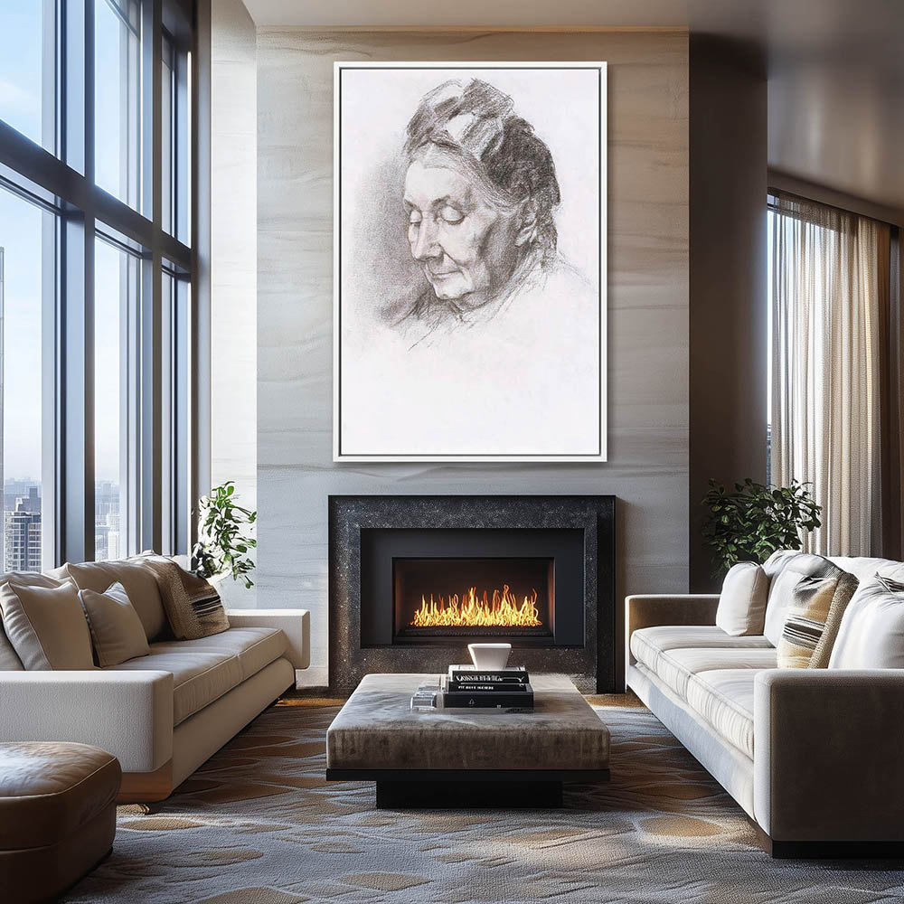 Drawing of the artists mother at 3/4 profile with eyes cast down
