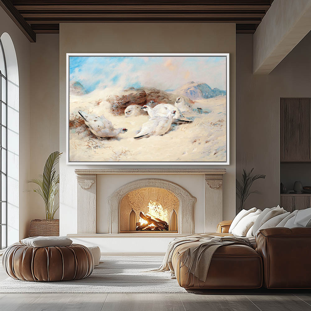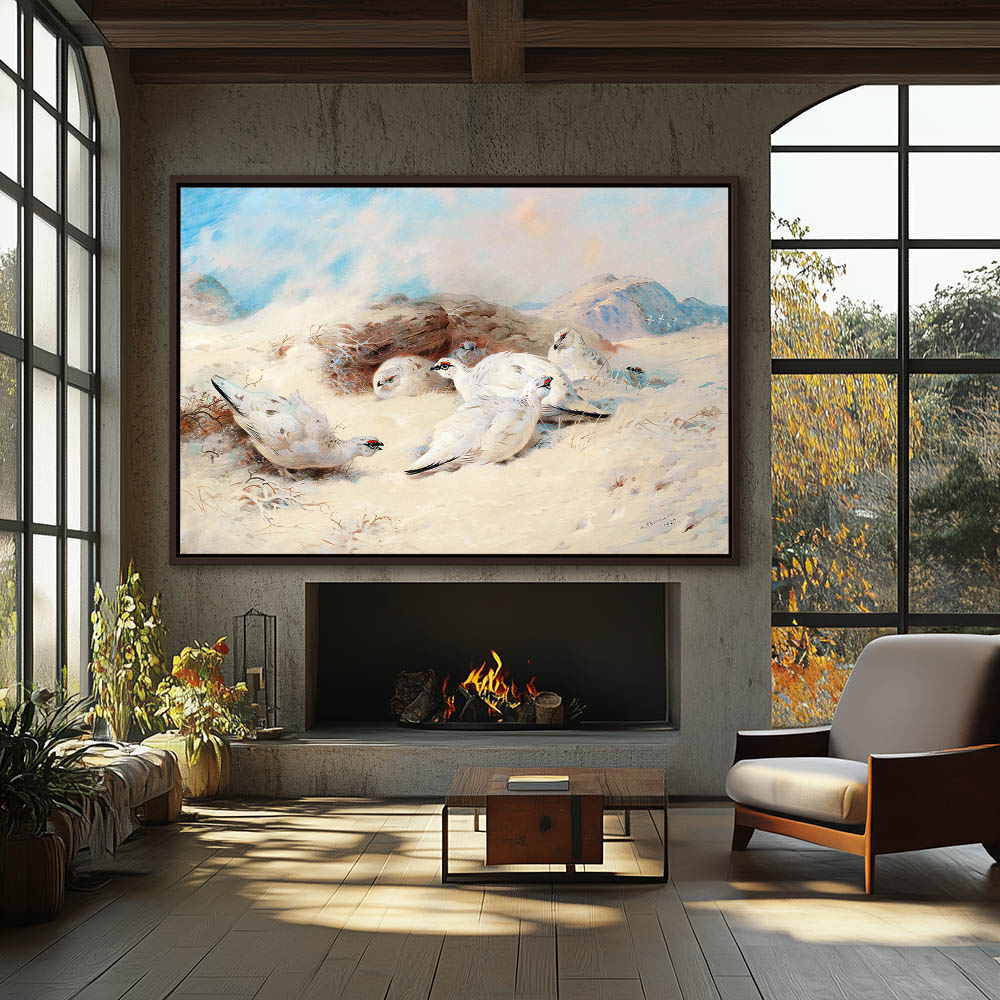 Painting of Ptarmigan Gamebirds in the Snow
