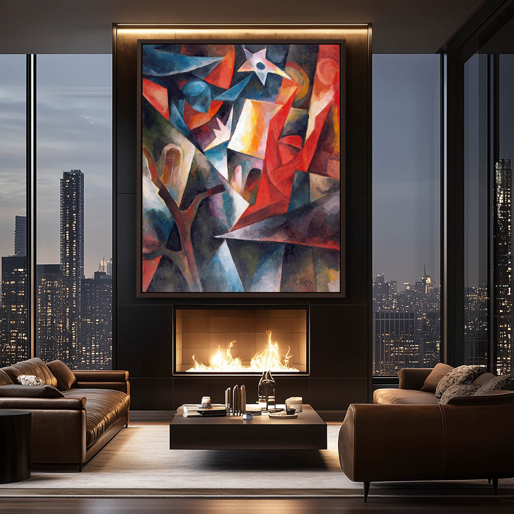 Abstract Painting of a Figure in a Cityscape in Cubism