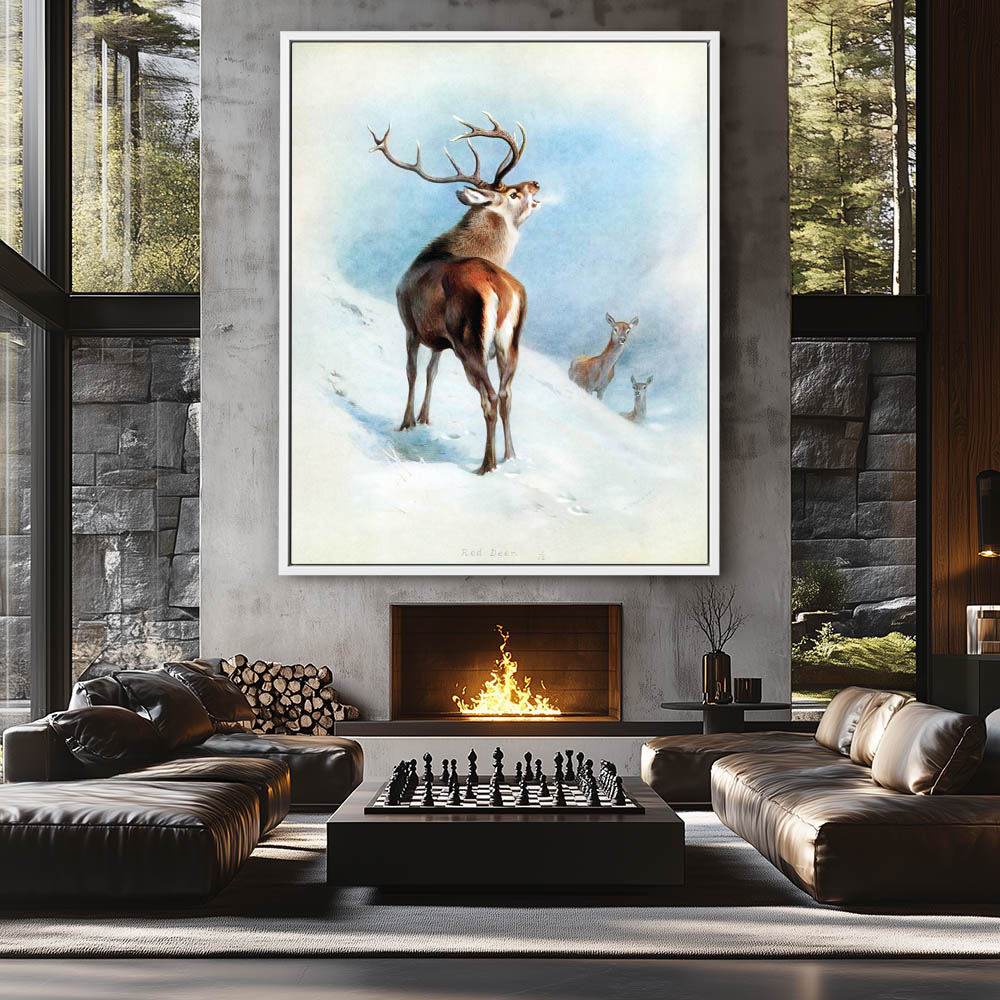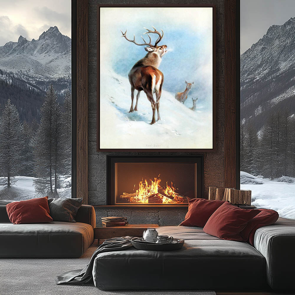 Painting of the Red Stag and Two Doe in the Snow