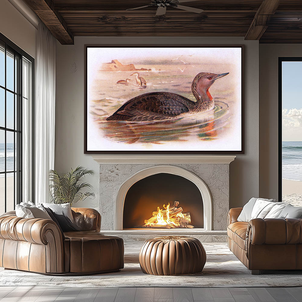 A Painting of a Diving Duck Floating on the Water