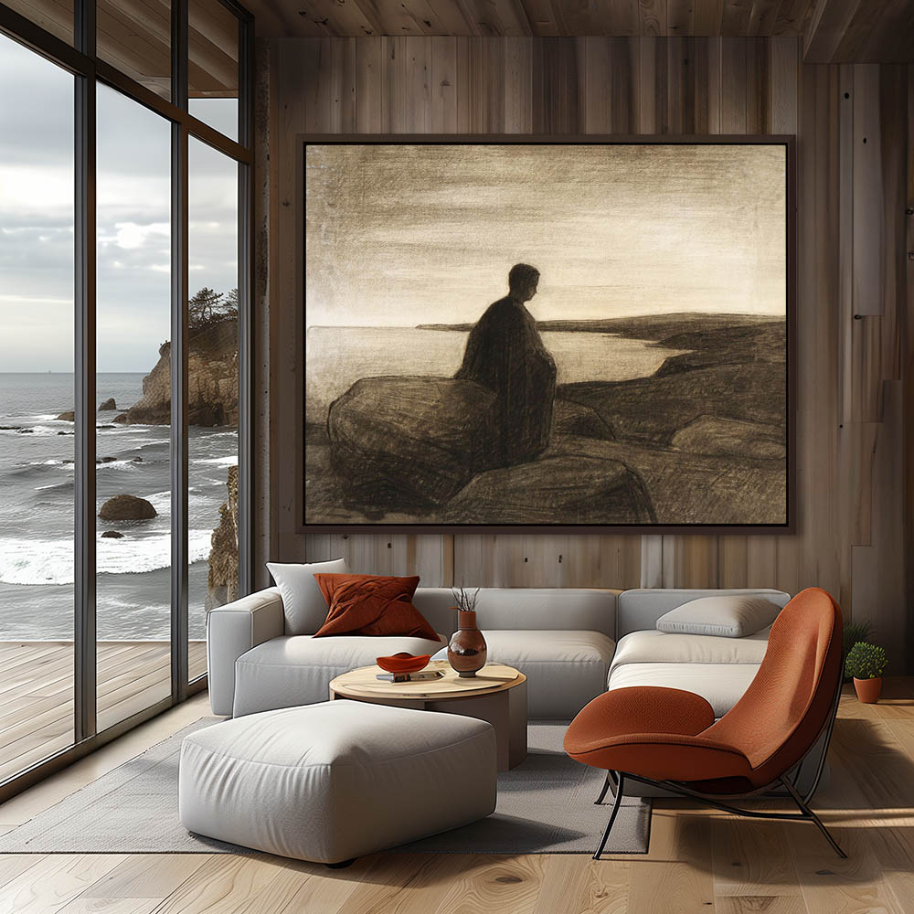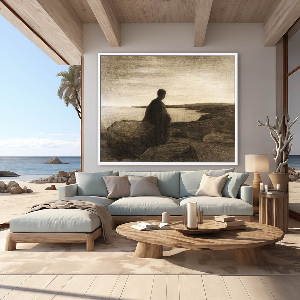 Figure on the Sea Shore in Thought Painting in Black and White
