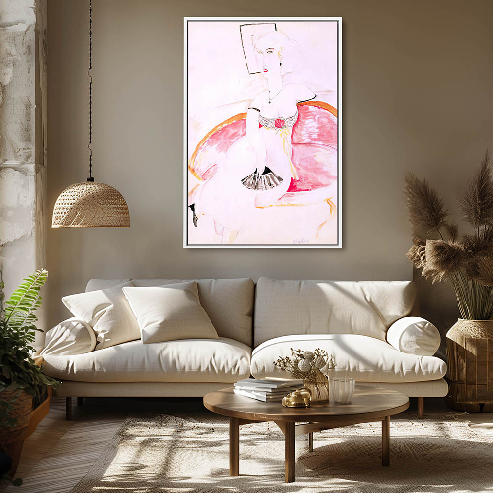Abstract Figurative Drawing of a Woman Holding a Fan