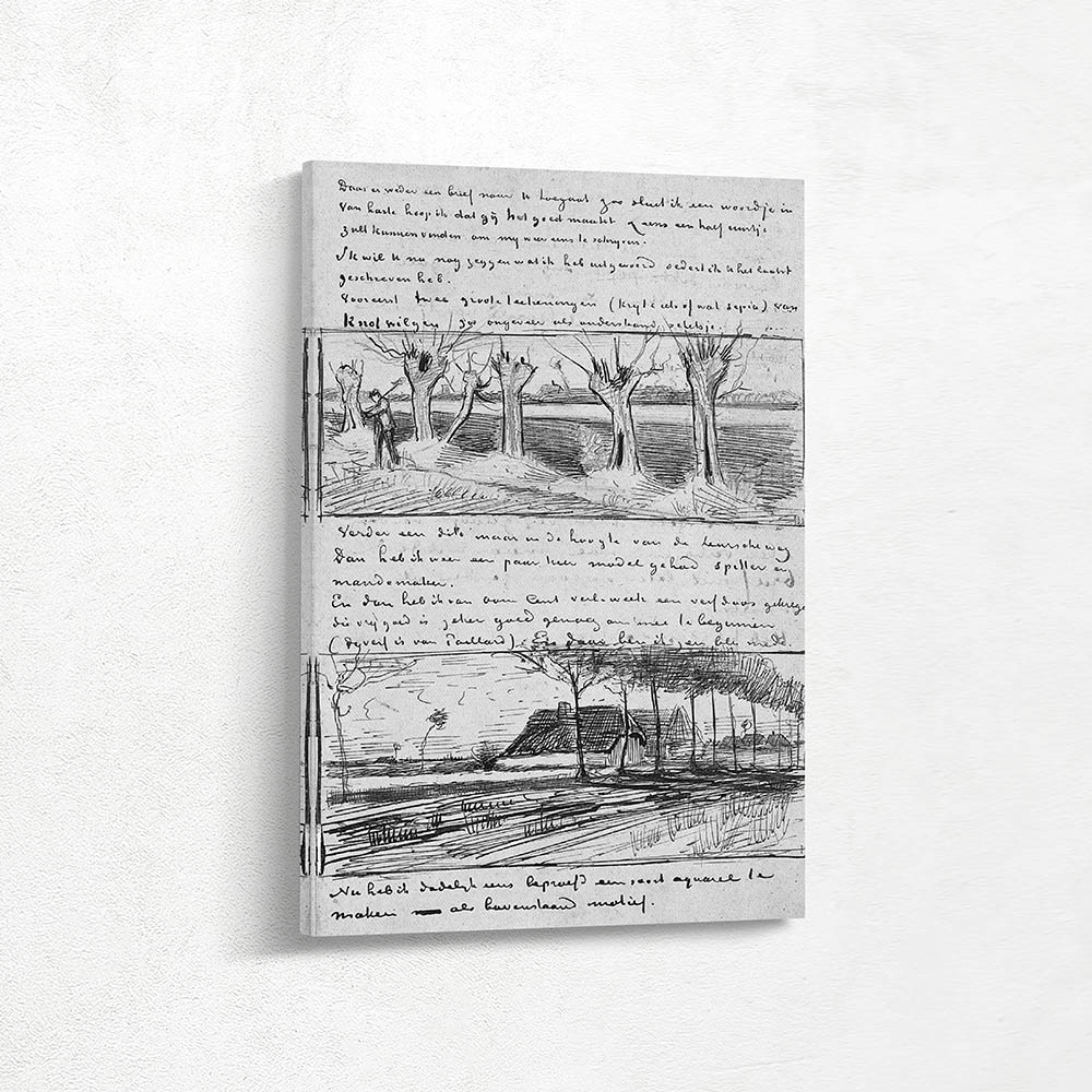 Road With Pollard Willows and Farmhouse on Road