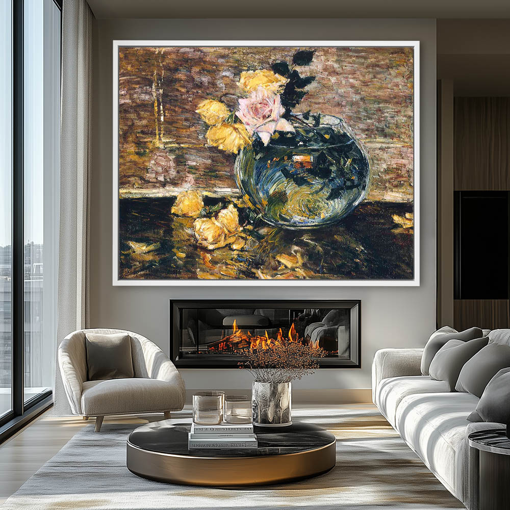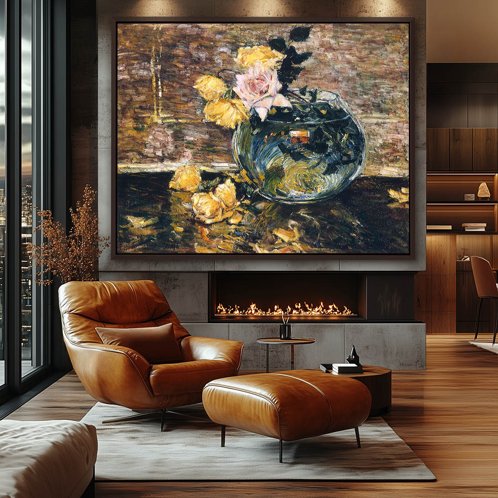 Still life with roses in a round bowl vase