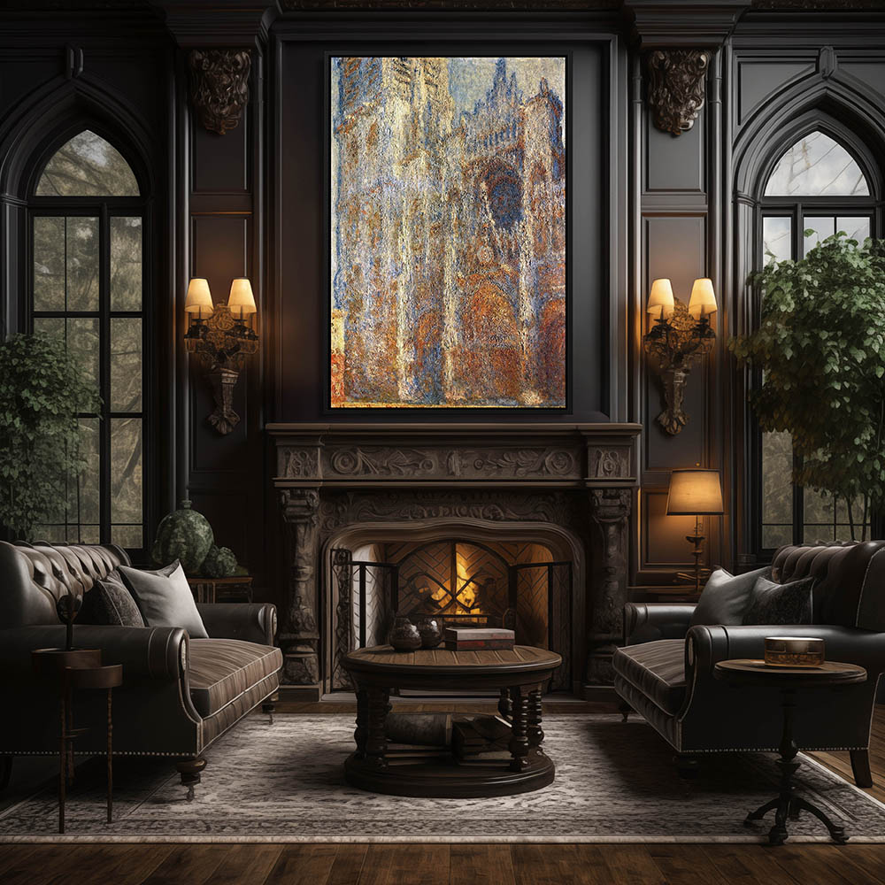 Vintage Church Painting of the Rouen Cathedral at Noon